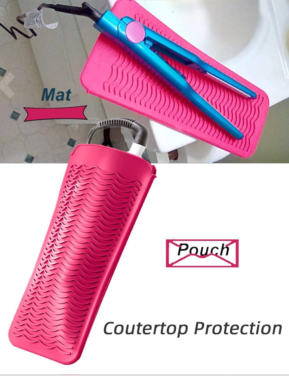 - ECO-FRIENDLY SILICONE AND SAFETY : Curling irons pouch is made of safety silicone. Protect your makeup table from bruns as mat and other items in your bag from burns as pouch.