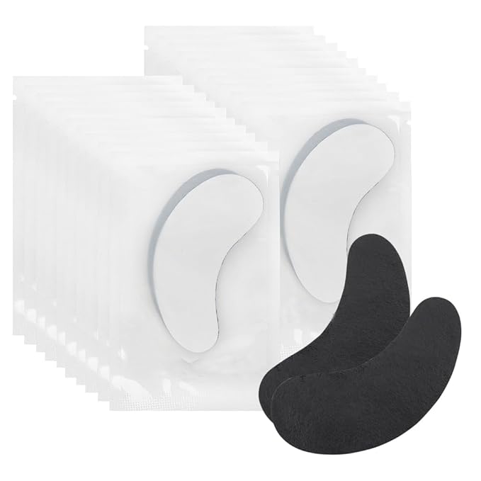 100 Pairs Hydrogel Under Eye Gel Patches Lint Free Eye Lash Pads Eyelash Extension Supplies Beauty Makeup Eye Mask Kit, Transparent/Black