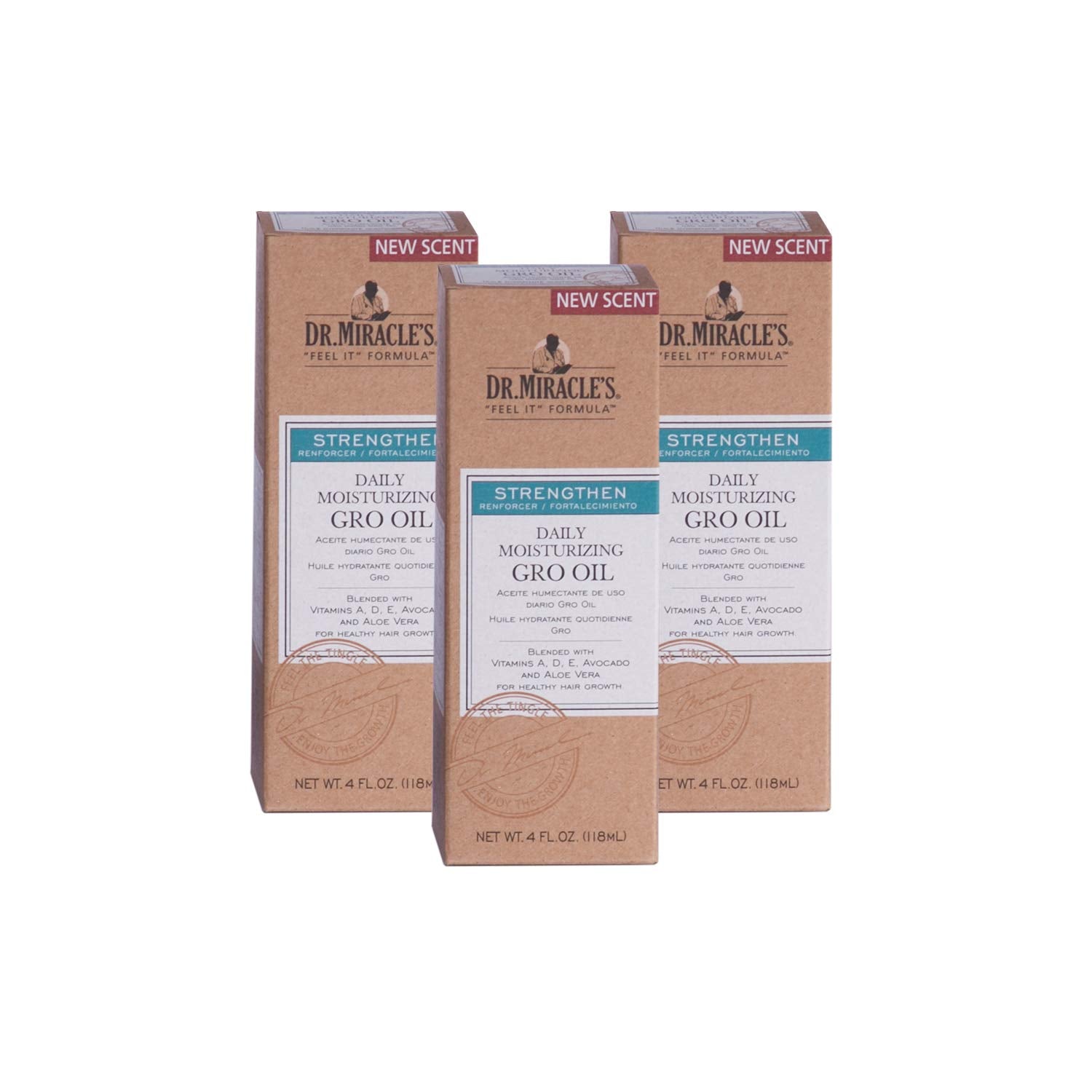Dr, Miracle's Daily Moisturizing Gro Oil blended with Vitamins A,D,E, Avocado and Aloe Vera – Hair Growth & Scalp Treatment, Strengthens & Repairs, 4 Oz, Pack of 3