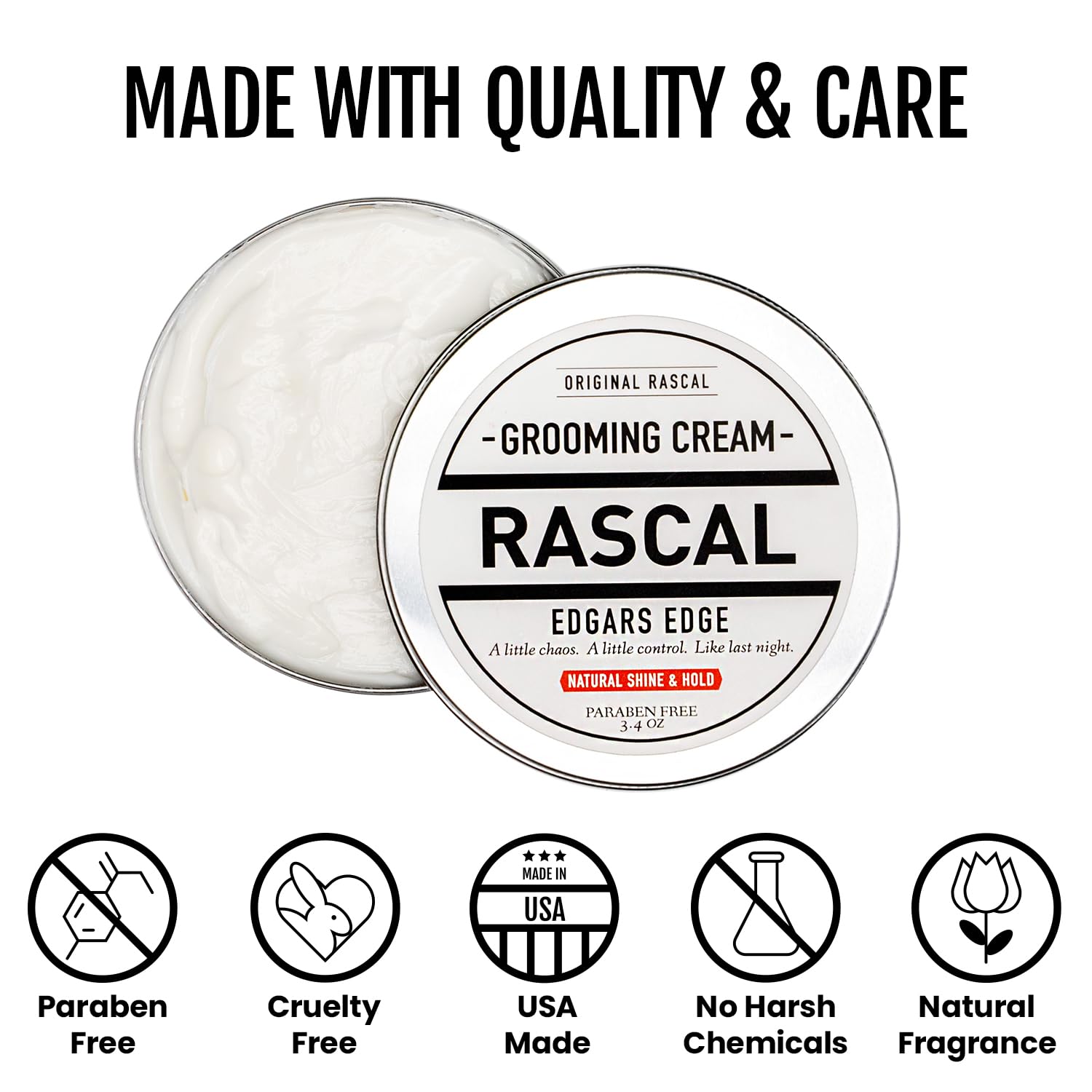 Rascal Original Edgar's Edge Grooming Cream - Hair Cream for Men with Medium Hold & Natural Shine, Mens Hair Conditioning & Styling Solution for All Hair Types, Made with Beeswax & Castor Oil - 3.4 Oz