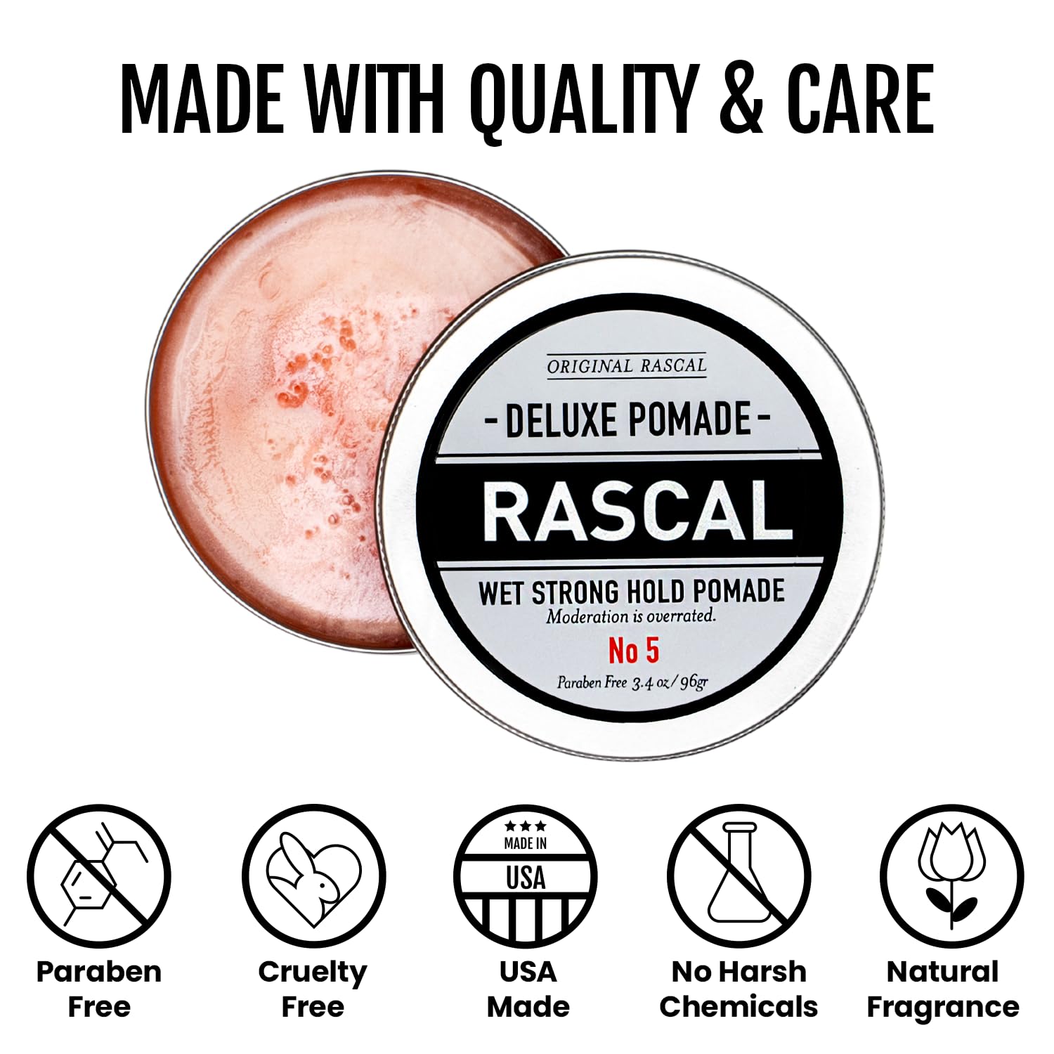 Original Rascal Deluxe Pomade #5 - Hair Paste High Shine w/Strong Hold & Wet Look - Men's Styling Care Solution for All Hair Type - Natural Made with Ceteareth-25 & Castor Oil for Hair Growth Health