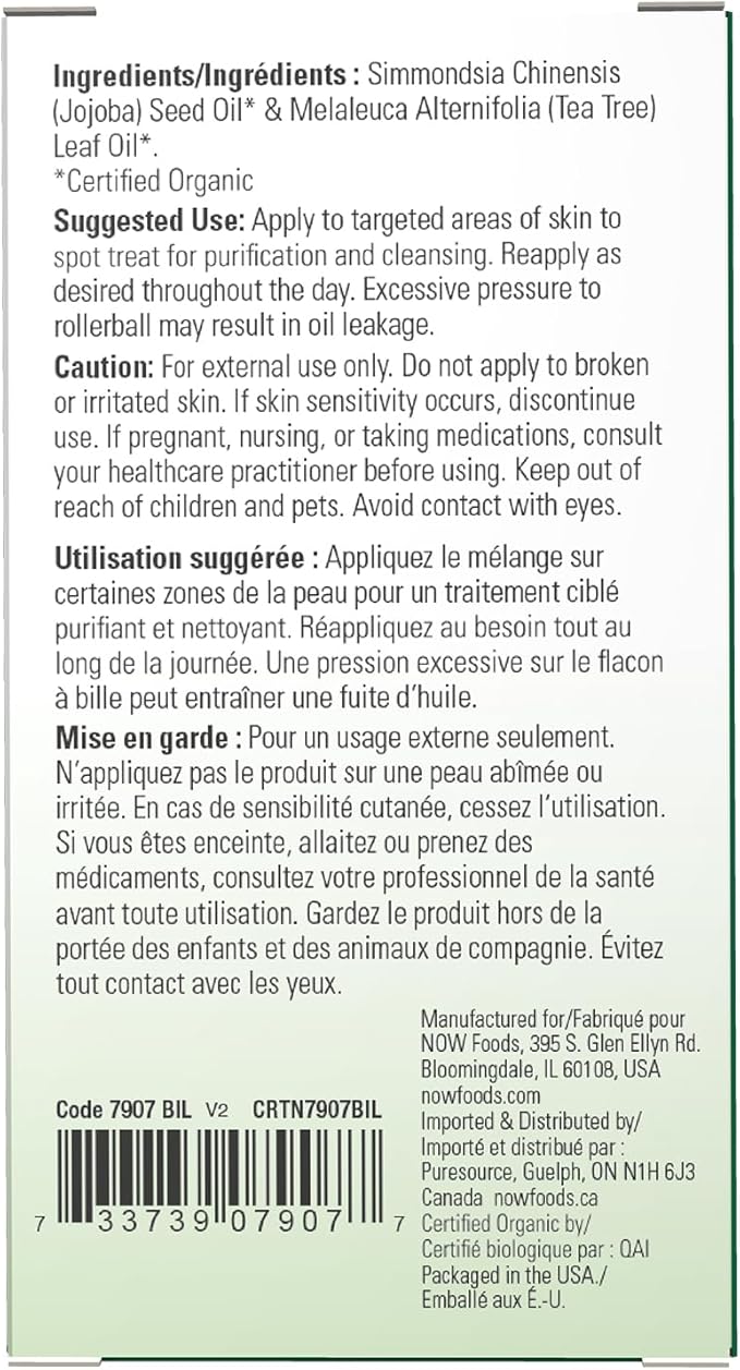 NOW Foods Essential Oils, Tea Tree Roll-On, Certified Organic, Purifying Blend, Steam Distilled, Topical Aromatherapy, 10-mL