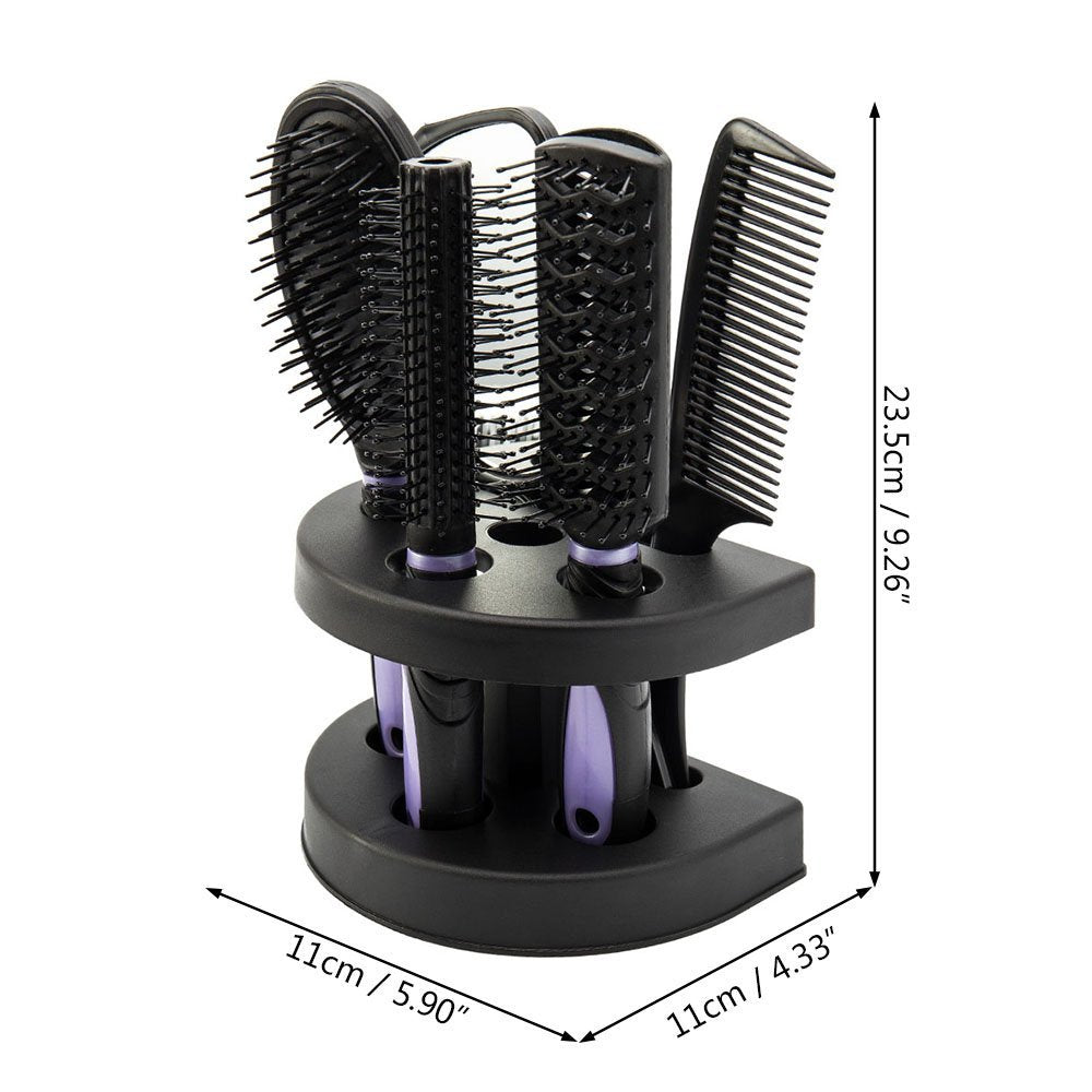 5 Pcs Hair Combs Set Professional Salon Hair Cutting Brushes Sets Salon Hairdressing Styling Tool Mirror And Holder Stand Set Dressing Comb Kits for Women and Men,Purple
