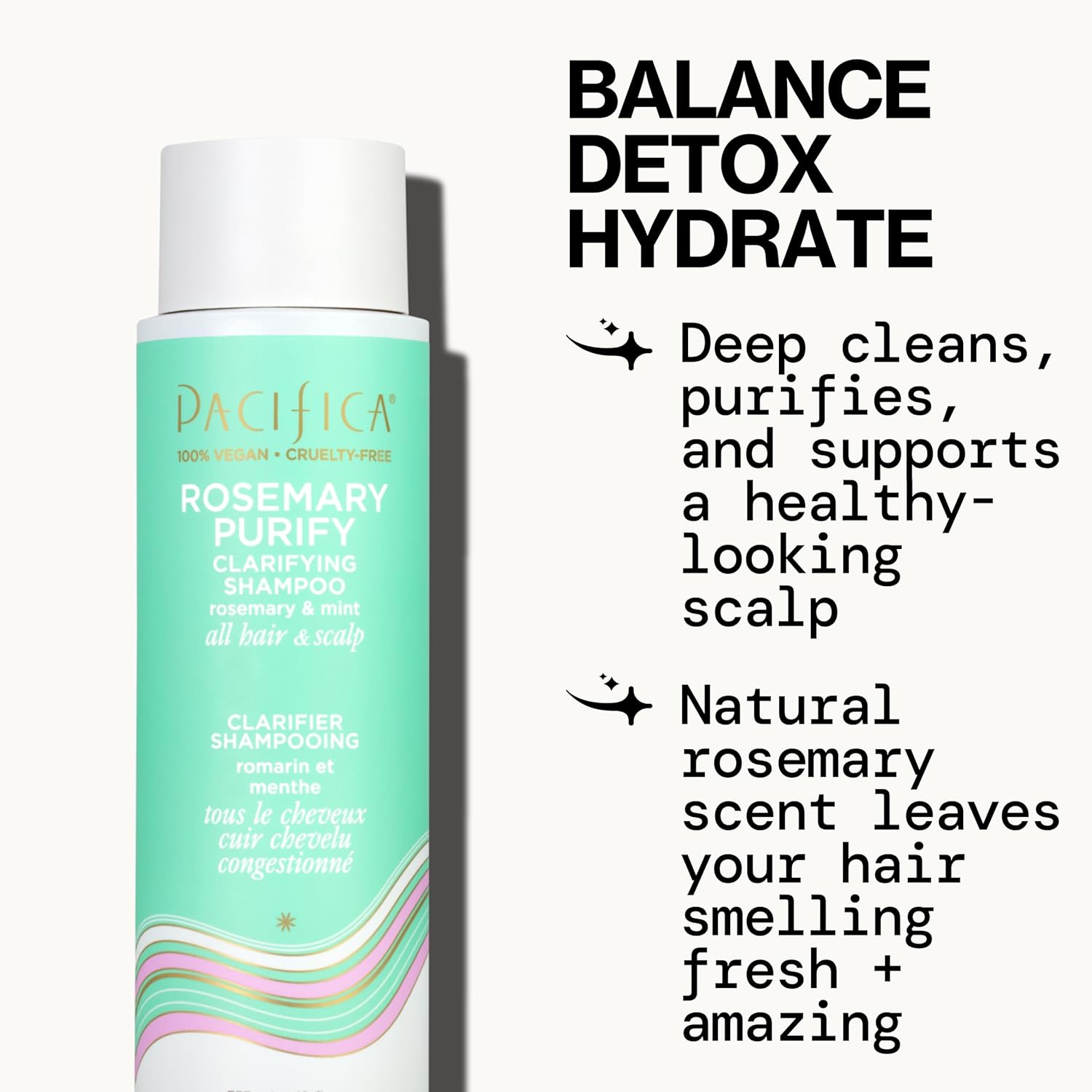 Pacifica Clarifying Shampoo – Rosemary Purify Invigorating Shampoo w/Soothing Mint for Detoxing Hair & Scalp Build-Up, Sulfate & Silicone Free - Vegan & Cruelty-Free Dermatologist Tested