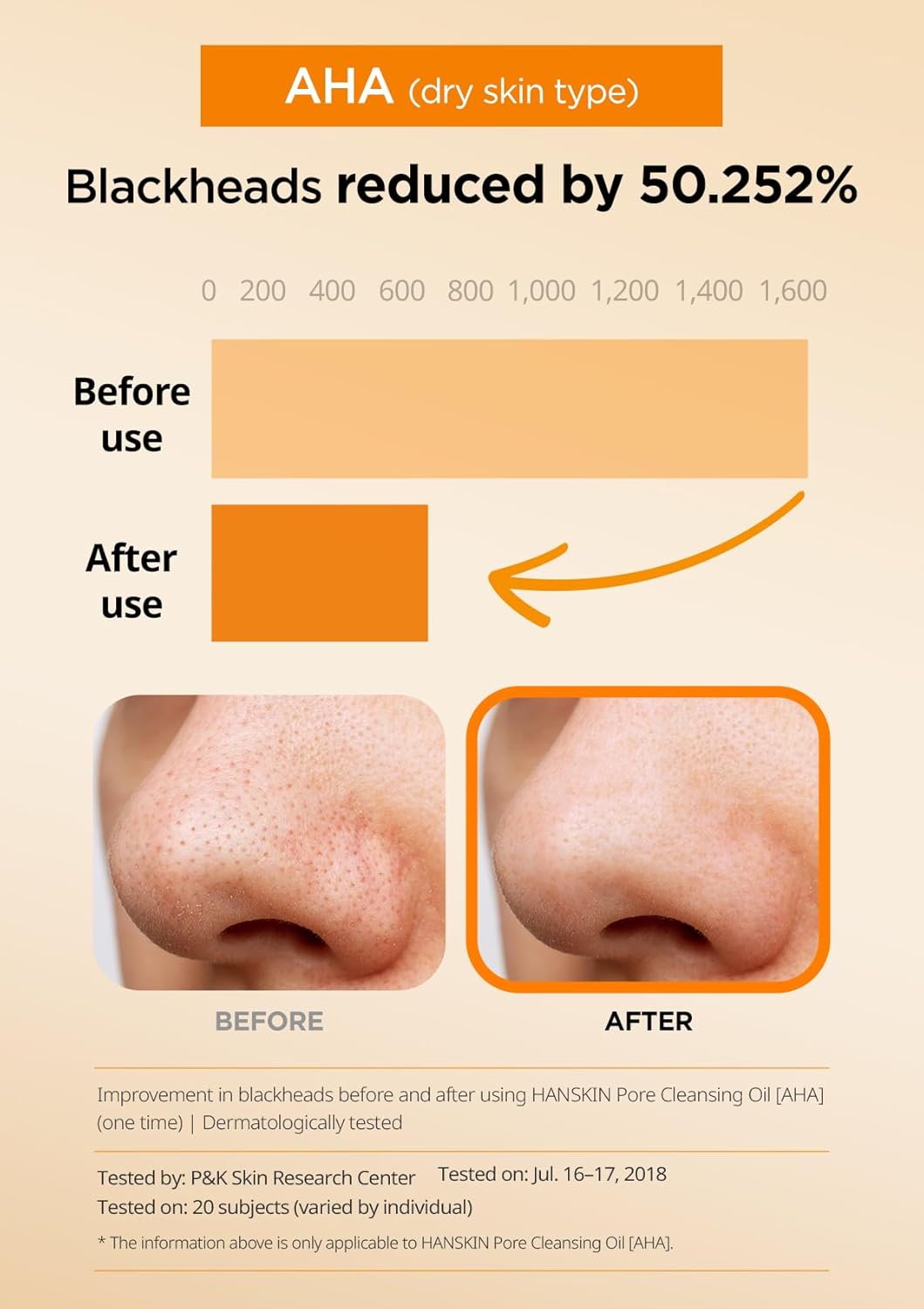 Hanskin Alpha Hydroxy Acid Pore Cleansing Oil, Sample Trial Mini Size, Exfoliating Makeup Remover Facial Cleanser Set, Moisturizing [30 ml/Pack of 3]
