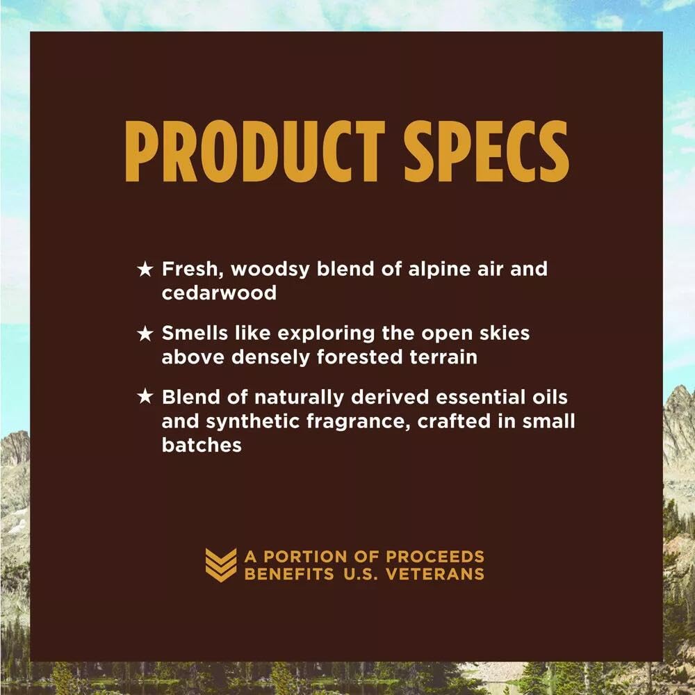 - Inspired by Nature — Made with naturally derived essential oils and select fragrance ingredients, crafted in small batches to embody the essence of mountain air and rugged trails.