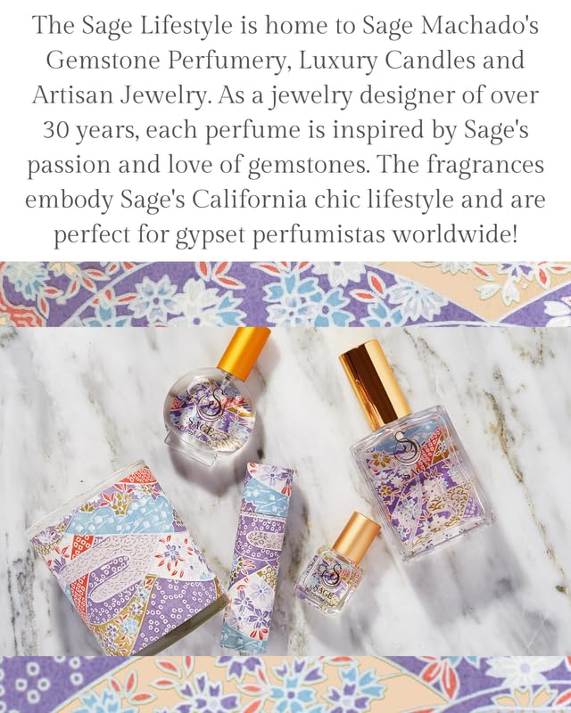 - [INGREDIENTS] Organic Denatured Cane Alcohol, Sage’s Signature Moonstone Perfume Oil, Distilled Water. Sage’s Gemstone Perfumes have been handcrafted by sourcing the highest quality essential oils from around the world using raw natural materials when possible, as well as sustainable, clean synthetics. The perfumes are Vegan and Cruelty-Free, Paraben and Phthalate Free, Gluten and Nut Free, & Made with love in sunny California.