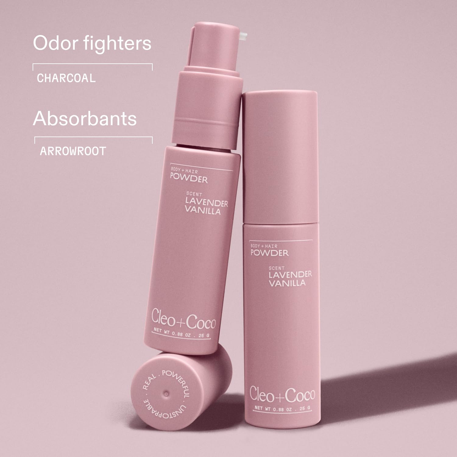 Cleo + Coco. Deodorant Powder for Body and Hair, Lavender Vanilla (0.88 oz), 2-in-1 Deo Powder & Dry Shampoo for Women & Men, Aluminum Free Deodorant, Talc-Free, Anti Chafe Protector, Travel-Size