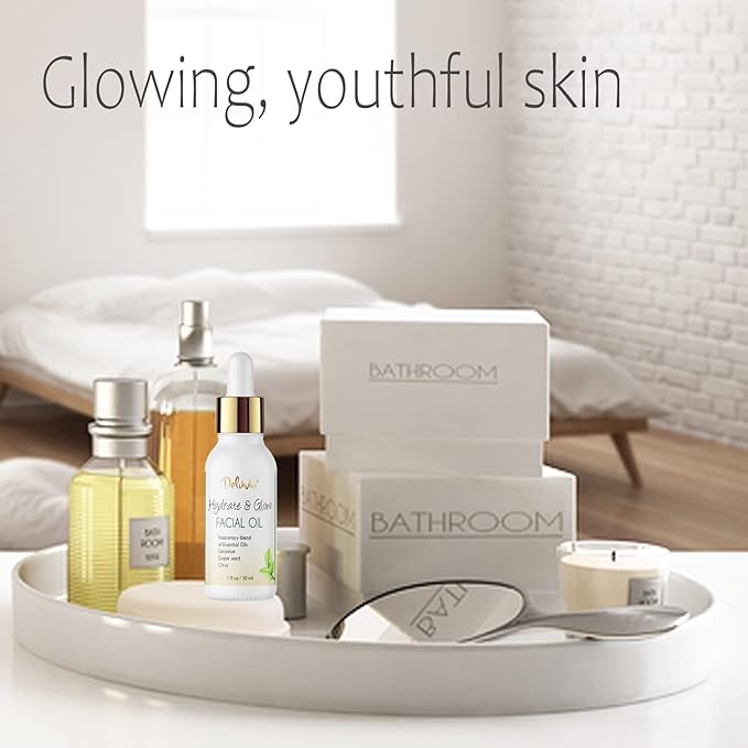 Deluvia Hydrate & Glow Facial Oil, Essential Oils for Dry Skin, Good for Sensitive Skin, Deep Moisturizer, Skin Care by Deluvia