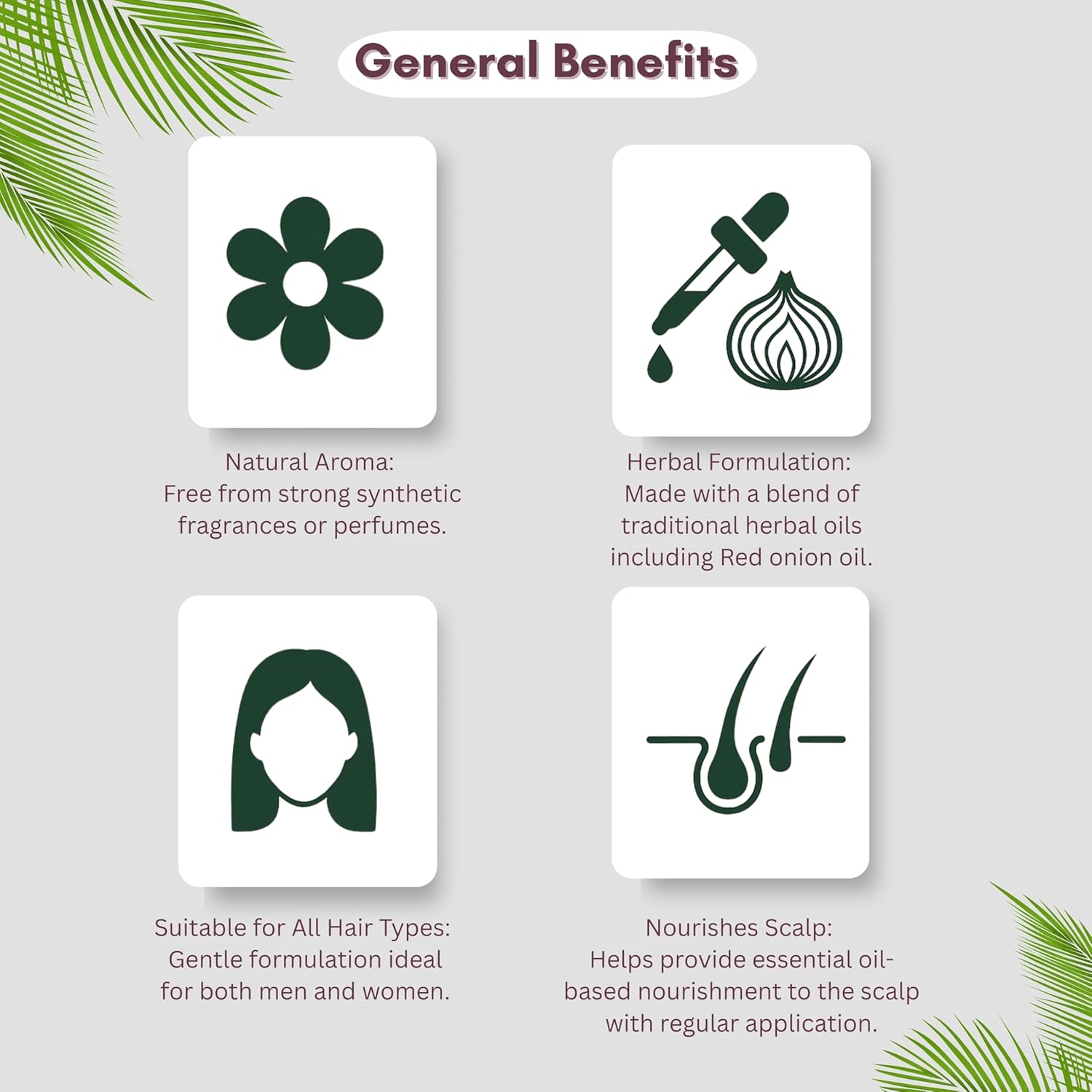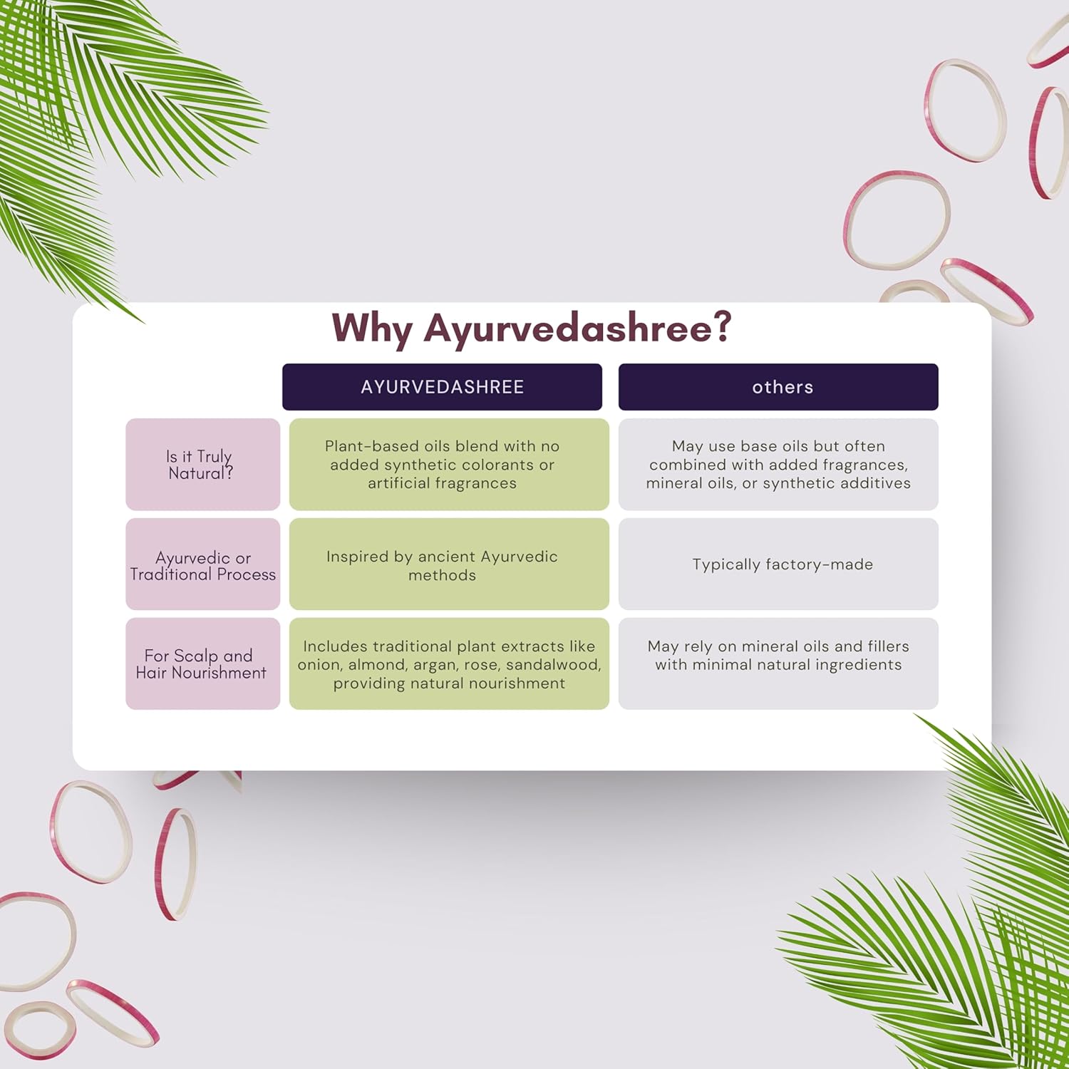 - HEALTHY GROWTH & SHINE. AYURVEDASHREE Onion Multipurpose Hair Oil contains natural vitamins, minerals, proteins your hair needs to support a healthy shine you’ll love to show off. With well known oils like Onion Oil, Argan Oil, Sandalwood Oil, Rose Oil.