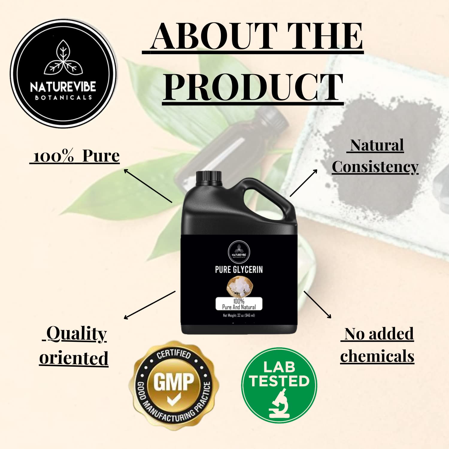 - ✅Naturevibe Botanicals Pure Glycerine, 32 ounces 100% Pure and Natural Glycerin Liquid Oil (946 ml)