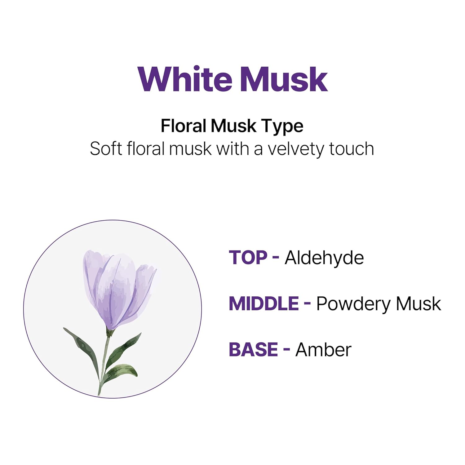 - WHITE MUSK: Experience the timeless allure of White Musk, a soft, powdery scent that exudes elegance and tranquility for everyday wear.