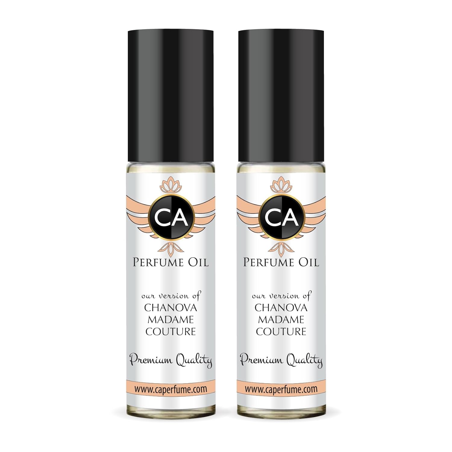 CA Perfume Impression of Madame Couture for Women Eau De Parfum Amber Floral Scent Long Lasting Perfumes for Women Travel Size TSA Ready for Day and Night Wear 0.33 Fl Oz 10ml (Pack of 2)