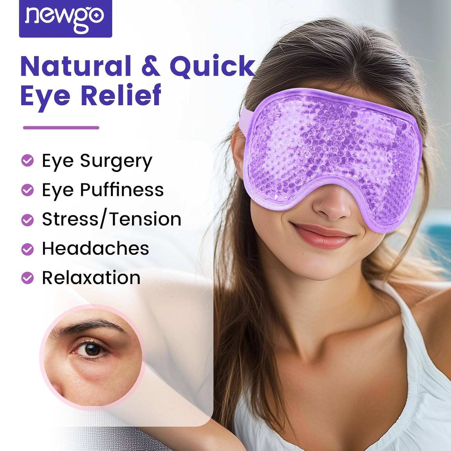 NEWGO Cooling Gel Eye Mask - Reusable Cold Pack for Puffy Eyes, Dark Circles, Migraine, Stress Relief - Purple With Soft Plush Backing