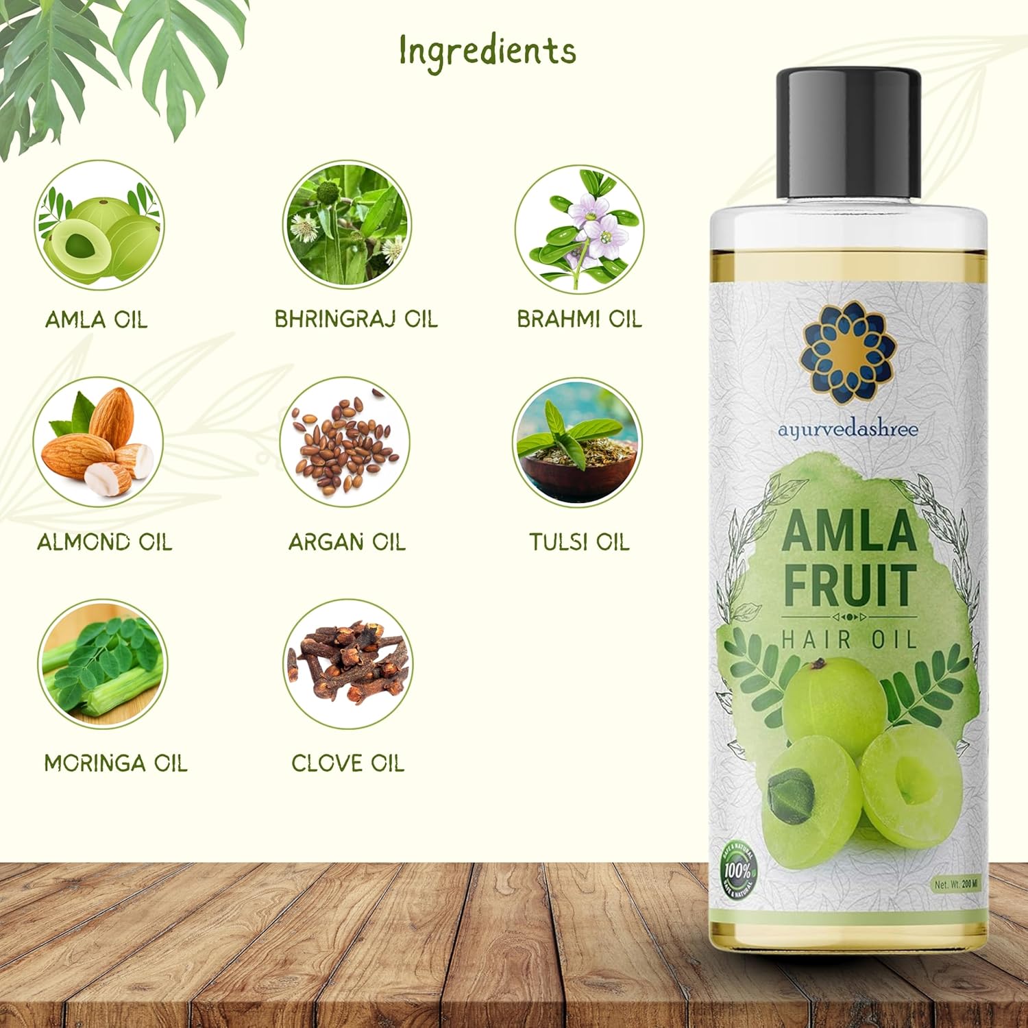 - Ingredients : Amla Oil, Bhringraj Oil, Brahmi Oil, Tulsi Oil, Almond Oil, Argan Oil, Morninga Oil, Clove Oil