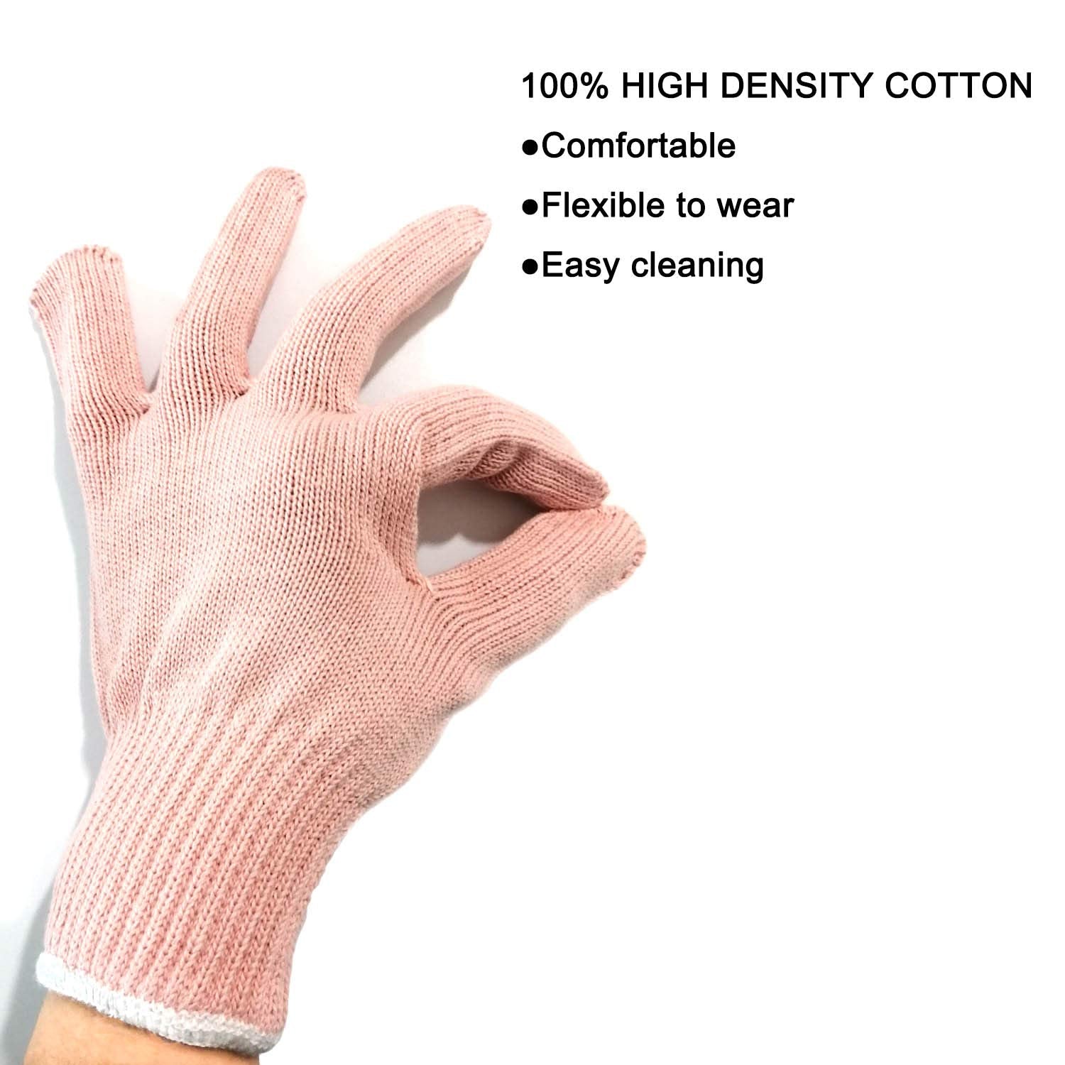 - Wearing the high density cotton glove, you may still feel heat, but no burns, even when touching extremely hot surface for a short time.