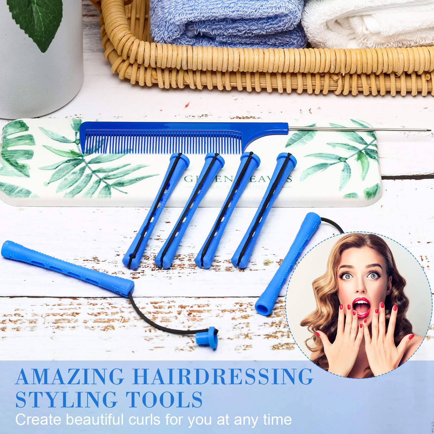 - Simple to apply: just use the rat tail comb to separate a small handful of slightly damp or dry hair, and wrap it on the rods; Then use the rubber band to fix it, does not require heating, no harm to the hair; Just wait for a while, you can make a natural curling hairstyle, adjust the direction of starting roll hair in or out can create various hair wave
