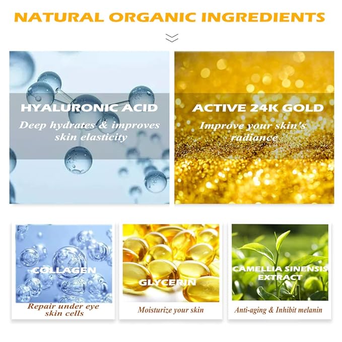 - ♥REPAIR UNDER EYE SKIN CELLS - Gold under eye mask is rich in collagen. It can effectively regenerates skin cells, dramatically elevate your own skins collagen growing ability. Restores skin elasticity and firmness. Reduces puffy eyes, fine lines, crow's feet, dark circles and eye bags.