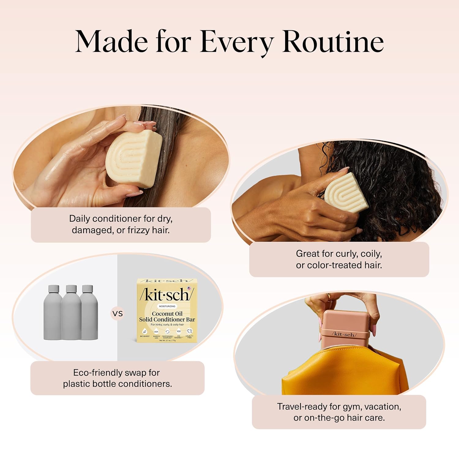 Kitsch Coconut Oil Conditioner Bar - Hair Conditioner For Women and Men - Deep Moisturizing, Nourishes, Hydrate & Soften Damaged Dry Hair - Silicone, Paraben & Sulfate Free - 2.7 oz