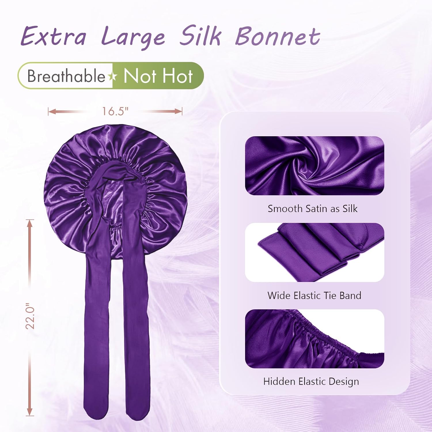 BONNET QUEEN Silk Bonnet for Sleeping Women Big Satin Bonnet Night Sleep Cap Wrap for Curly Hair with Adjustable Tie Band,Large, Purple