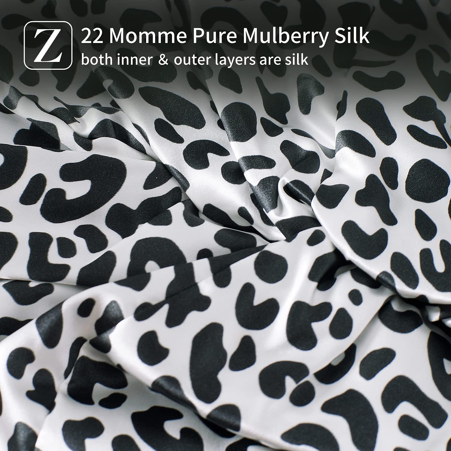 ZIMASILK 22 Momme 100% Mulberry Silk Bonnet for Sleeping & Women Hair Care, Highest Grade 6A Silk Hair wrap for Sleeping with Premium Elastic Stay On Head (1Pc, Leopard Black/White)