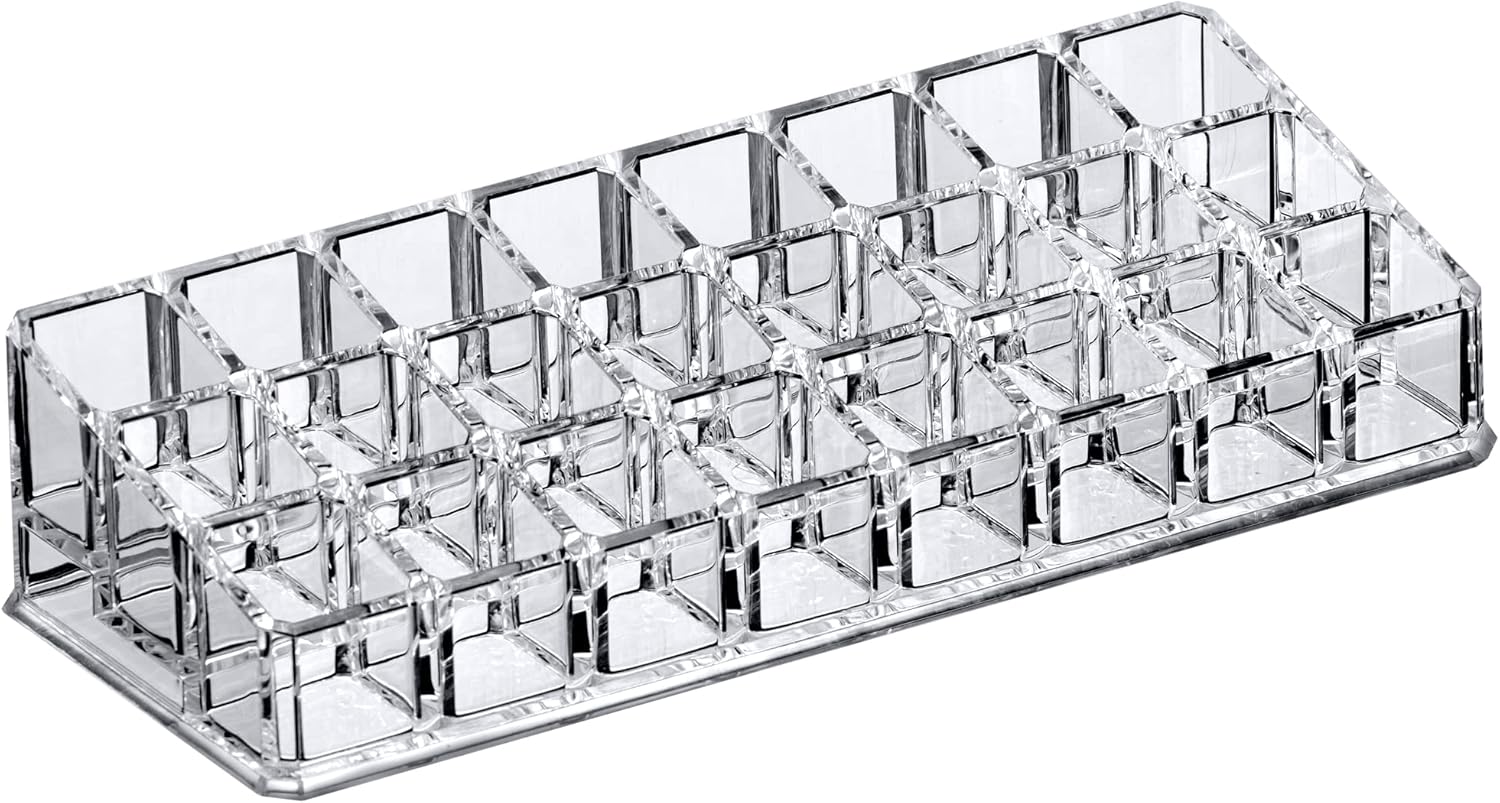 Amazing Abby - Glamour - 24-Slot Acrylic Lipstick Organizer, Lipstick Holder, Lip Gloss Holder, Cosmetic Storage Display, Perfect Storage Solution for Drawer and Vanity (Slot Size: 0.9" x 0.9")