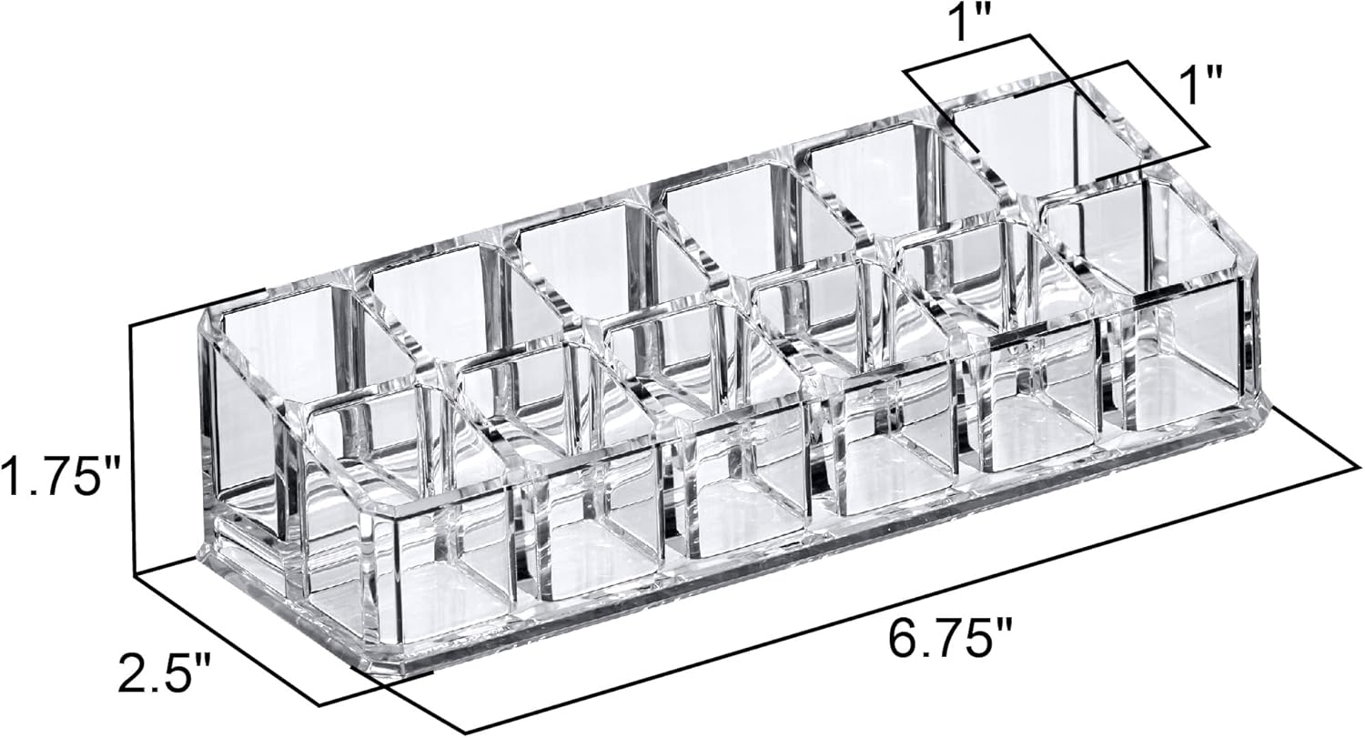 Amazing Abby - Glamour - 2-Pack 12-Slot Acrylic Lipstick Organizer, Lipstick Holder, Lip Gloss Holder, Cosmetic Storage Display, Perfect Storage Solution for Drawer and Vanity (Slot Size: 0.9" x 0.9")