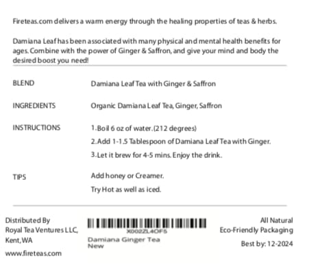 FIRE TEAS Organic Damiana Leaf Herbal Tea with Saffron & Ginger - Health, Wellness & Stamina for Men & Women -