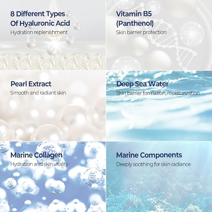 - Vitamin B5-Infused: Rich in the proven benefits of vitamin B5 (panthenol), Blue Pearlsation Hydra Marine Ampoule fortifies the skin's natural barrier against environmental aggressors. This minimizes moisture evaporation and nourishes the skin, giving it a healthy and youthful appearance.