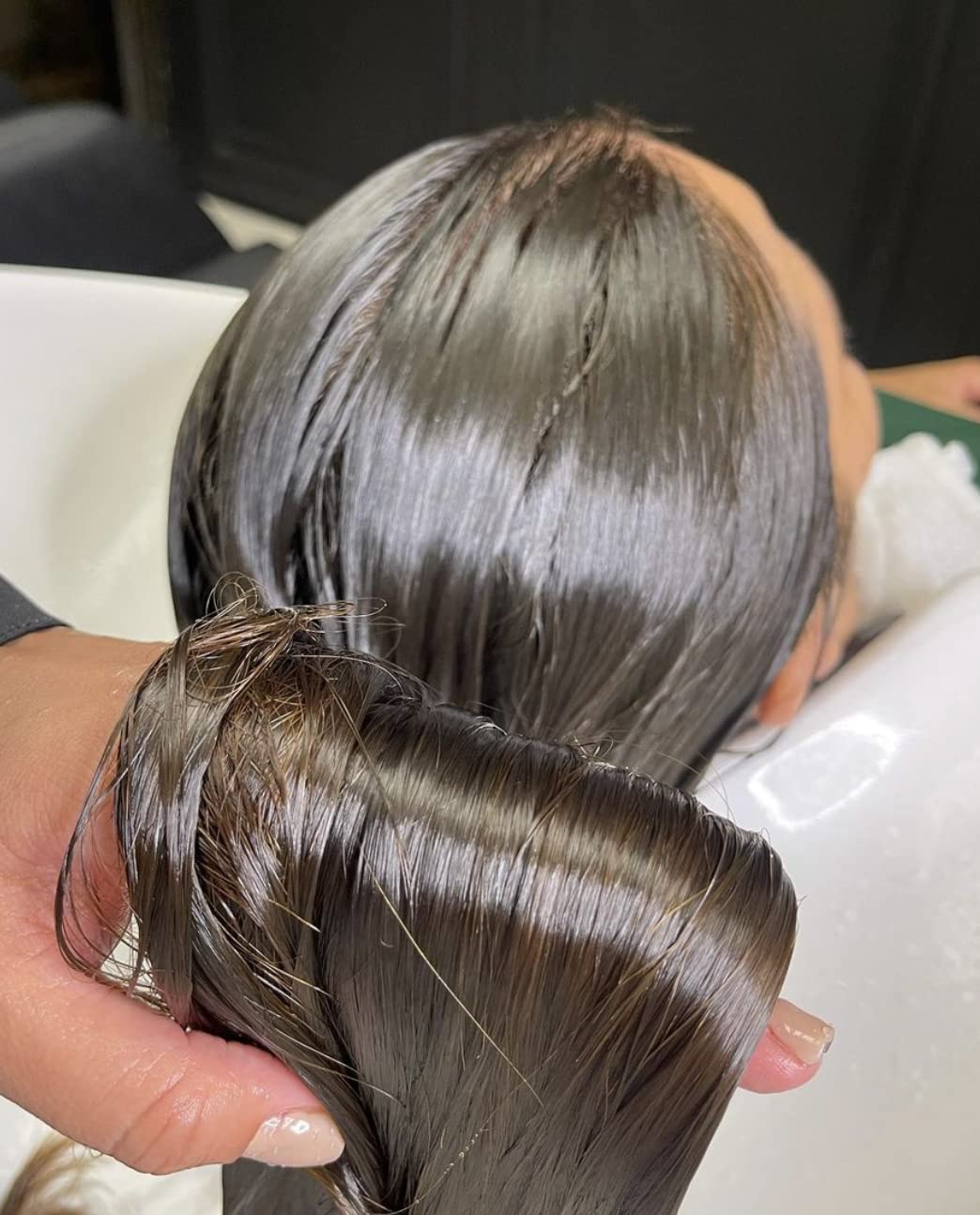 - STEP 4 - Dry your hair with a Dryer and use the hair straightener strand by strand thin throughout the length of your hair of 5/10x - STEP 5 - Now you have a hair for 12 weeks* without frizz.