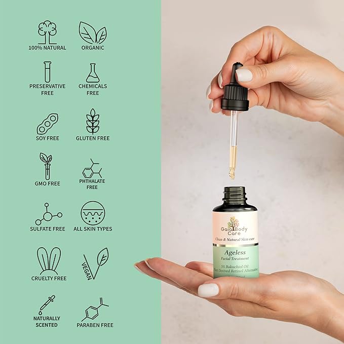 - Hydrating - This Gaia Body Care bakuchiol treatment is a uniquely formulated facial oil that hydrates and plumps the skin instantly, repairing dry skin, removing fine lines, and replenishing and boosting the skin's ability to retain moisture, revealing a smoother youthful complexion.