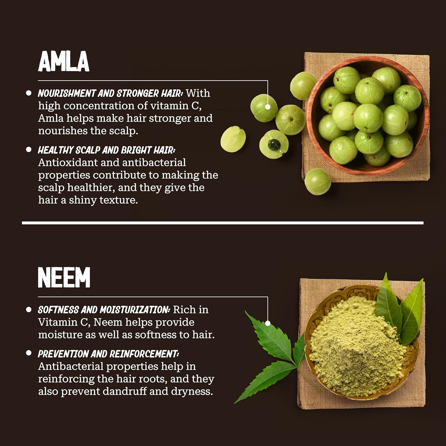 - Pure, Natural Ingredients: This hair oil is crafted with organic Amla and Neem is free from harmful chemicals. Your hair deserves the best, and that's what we offer.