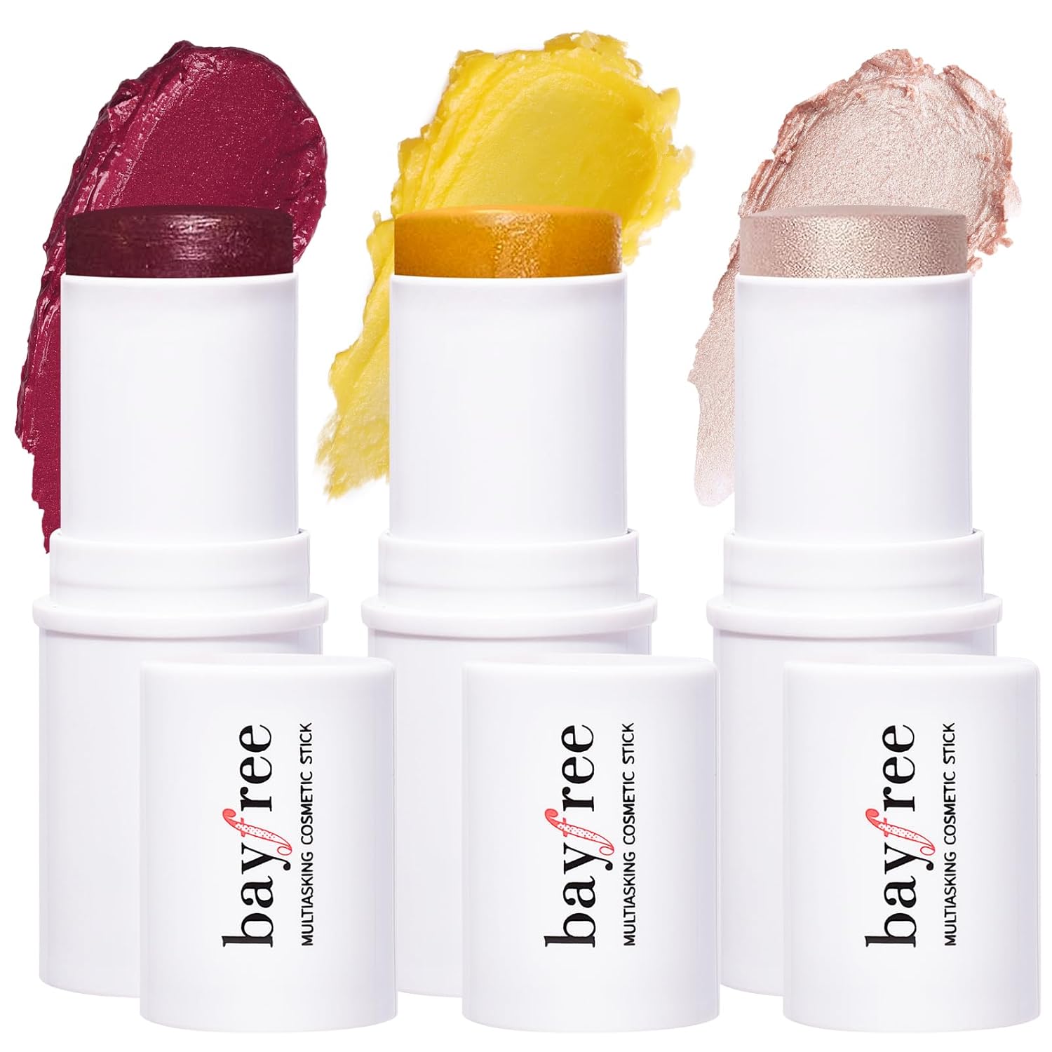 KIMUSE Multi Stick Trio Face Makeup, Cream Blush Stick for Cheeks & Lips, Contour Stick & Highlighter Makeup Sticks for All Skin