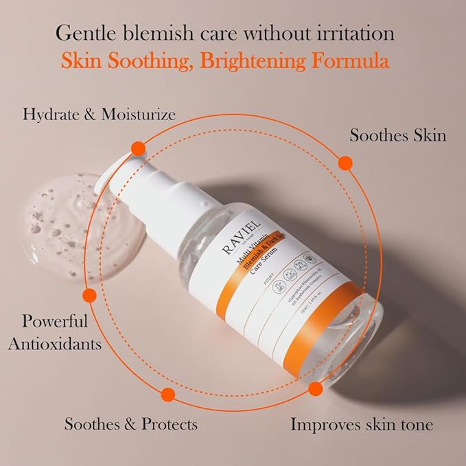 RAVIEL Multi Vitamin Dark Spot & Blemish Face Serum | 7 Hyaluronic Acid for Deep Hydration & Brightening for All Skin Types | Snail Mucin, Anti Aging, Korean Skincare (1.69 fl oz)