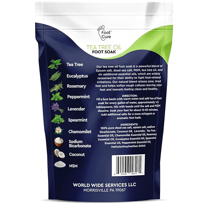 - 100% NATURAL TEA TREE FOOT SOAK FOR HEALTHY FEET: Using nothing but the finest natural and organic ingredients, this foot soak is rich in Epsom salts, Pure Dead Sea salts, tea tree oil, eucalyptus, peppermint, cajuput, camphor, rosemary, lavender, and other essential oils. Their powerful combined action is the perfect way to fight away foot conditions, soften your calluses, moisturize your cracked heels with a foot mask moisturizing effect, and pamper your tired and sore feet whenever you feel like it!