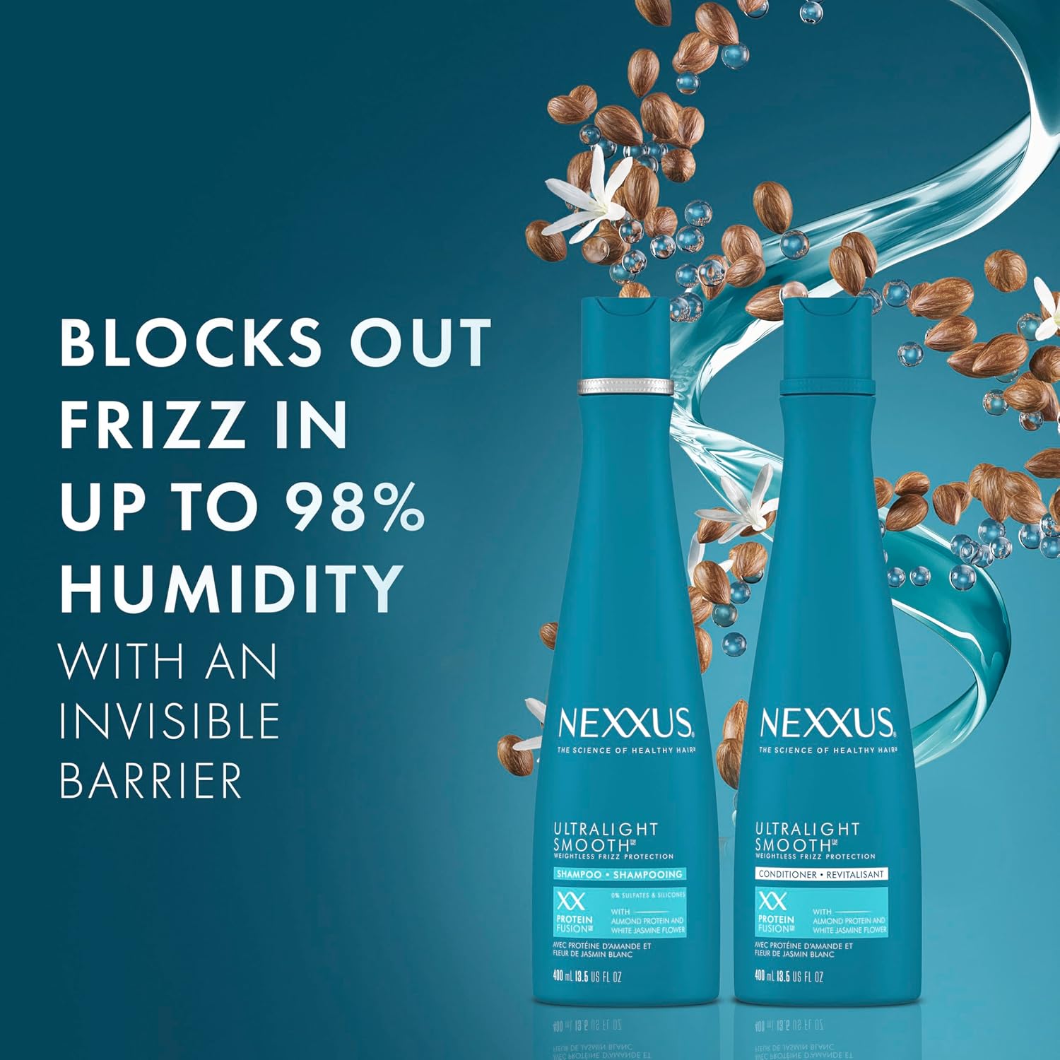- TAKE CONTROL AGAINST FRIZZ: Nexxus Ultralight Smooth Shampoo and Conditioner form a weightless, invisible barrier around each strand to block out frizz in up to 98% humidity for smooth hair