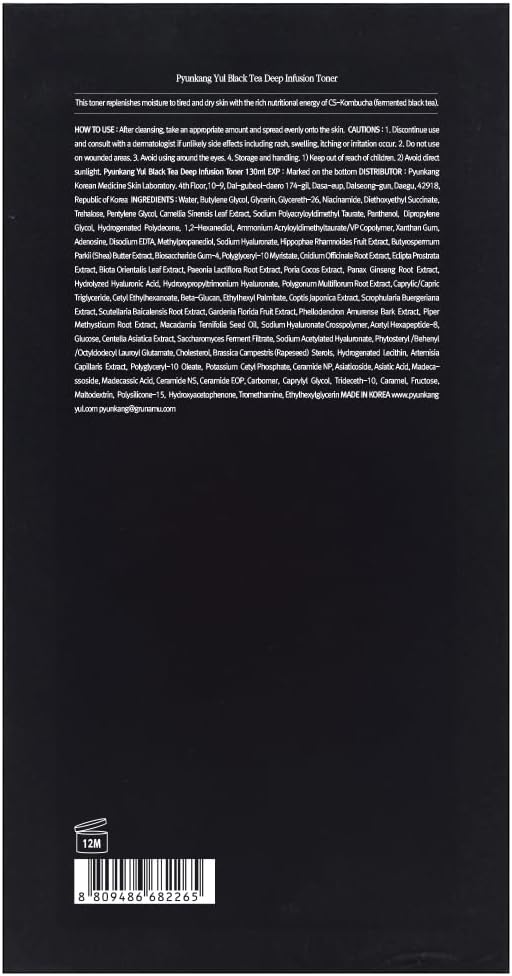 - IMPROVE SKIN ELASTICITY BY KOMBUCHA ENERGY (Fermented Black Tea) - Kombucha is fermented from 7days to 30 days or more containing rich ingredients such as Polypheno, catechin. Pyunkang Yul Black Tea Toner delivers the power of condensed fermented Black Tea to help keep the skin firm and plump