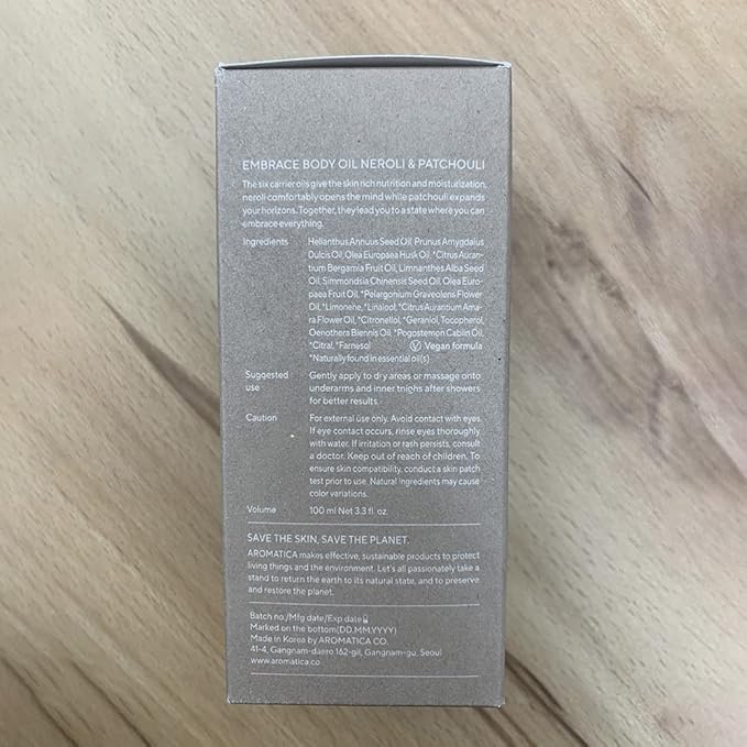 - [ Give Yourself Relaxing Moment ] Embrace Body Oil deeply moisturizes and boosts the radiance of your skin. Cleanse your mind while nourishing & taking care of your skin. A warm, gentle hug after a long and tiring day.