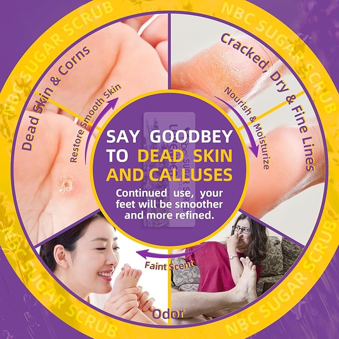 - ✅【Faint Fragrance - Odor Removal】 The Sugar Scrub not only removes toxins, but also moisturises and nourishes feet while delivering a long-lasting fresh scent and removes unpleasant odors from your feet.