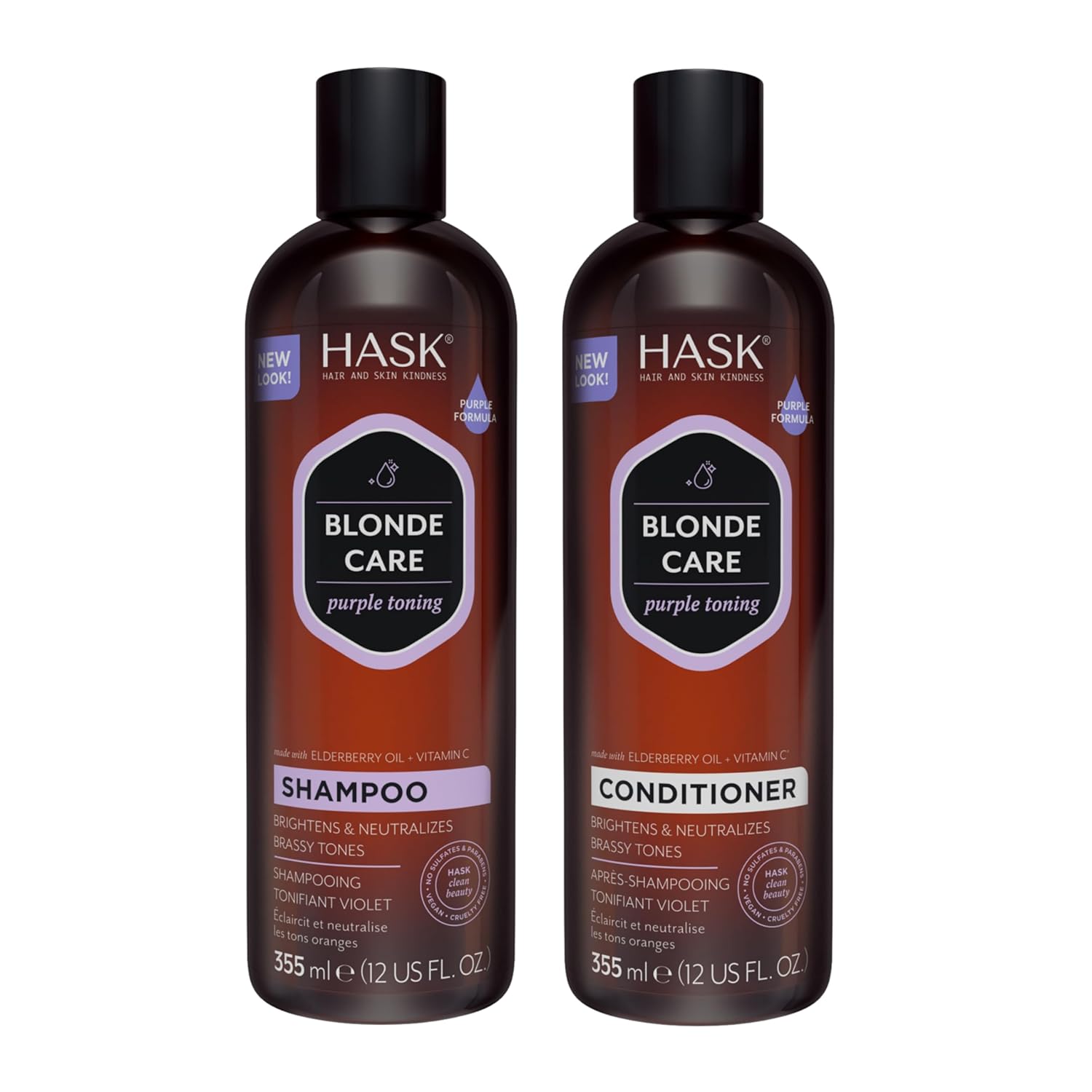 HASK Blonde Care Shampoo + Conditioner Set for Blonde Hair | Sulfate-Free, Gluten-Free, Vegan, Color Safe | 12oz each