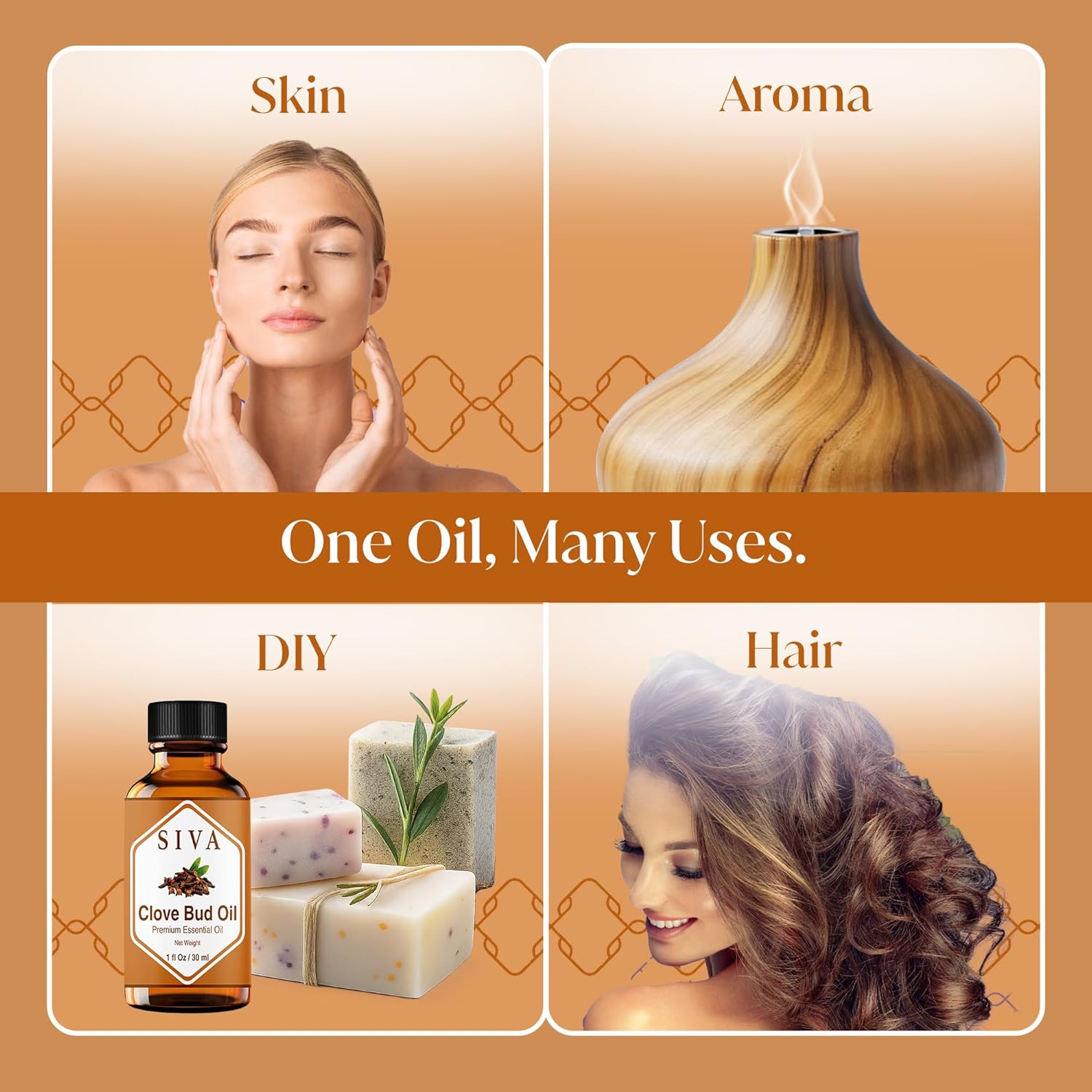 Siva Clove Bud Essential Oil - 1 Fl Oz – 100% Natural Clove Bud Oil - for Diffuser, Face, Skin Care, Aromatherapy, Hair Care, Scalp and Body Massage - with Dropper