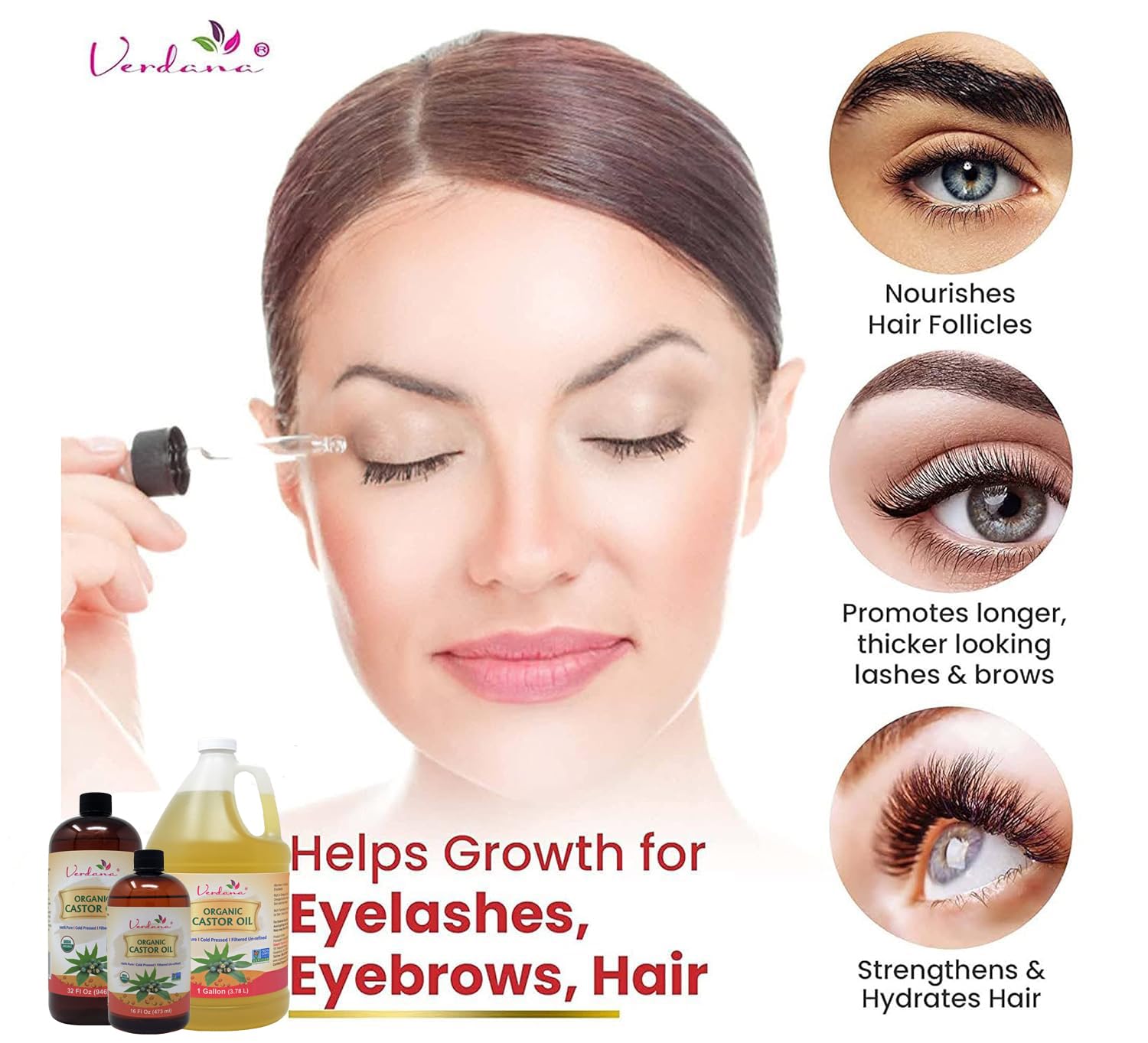 Verdana Organic Castor Oil 1 Gallon (128 fl oz) – USDA Certified Organic, Cold Pressed, Hexane-Free – For Hair, Eyelashes, Skin & Castor Oil Packs