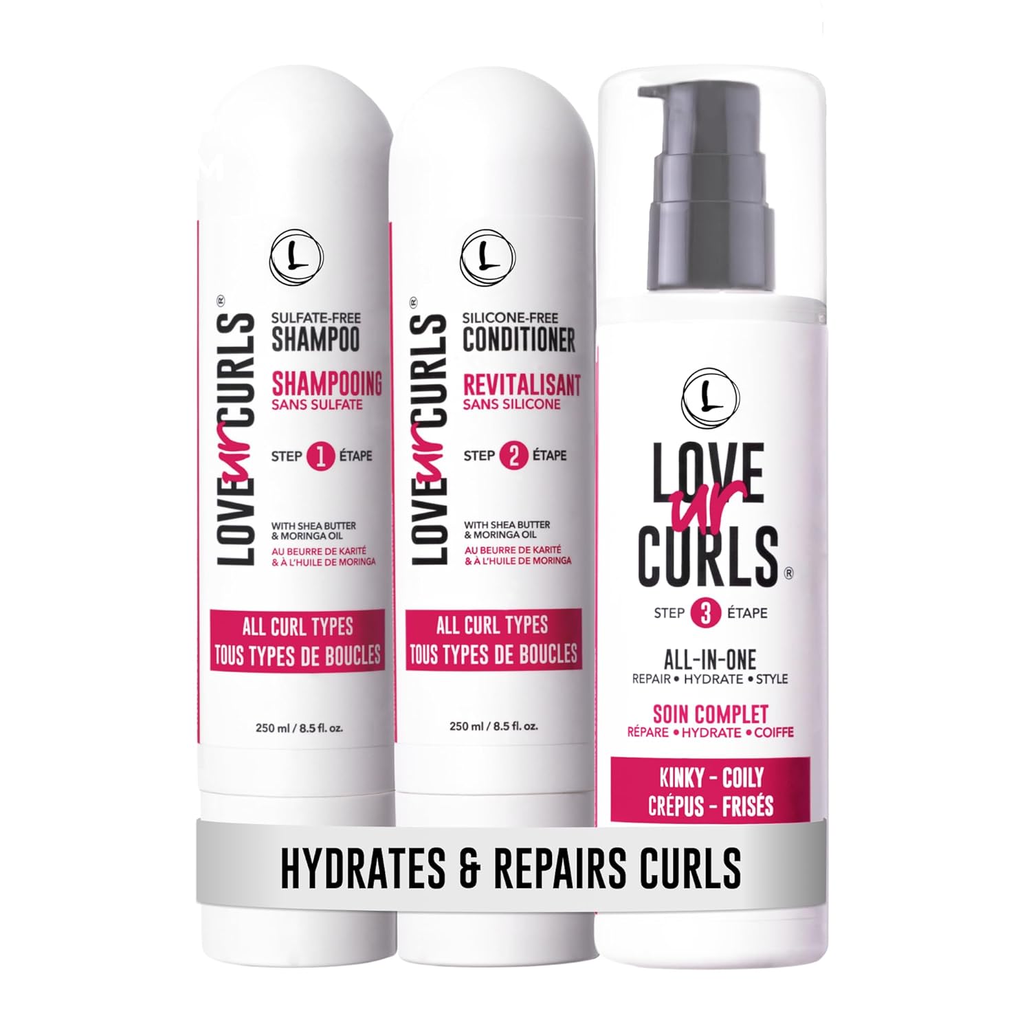 Love Ur Curls - Shampoo & Conditioner Set with All in One Curl Cream Styler for Kinky & Coily Hair, 3 Step System for Repair and Moisturizing