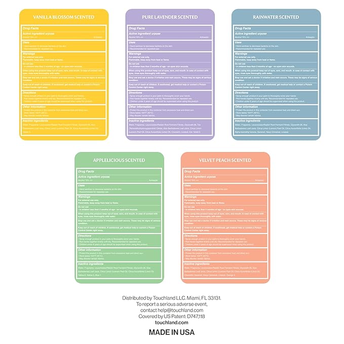 Touchland Power Mist Hydrating Hand Sanitizer Spray, BLOSSOM 5 Set (Lavender, Vanilla, Rainwater, Peach, Applelicious), 1 FL. OZ. Travel Size (Set of 5)