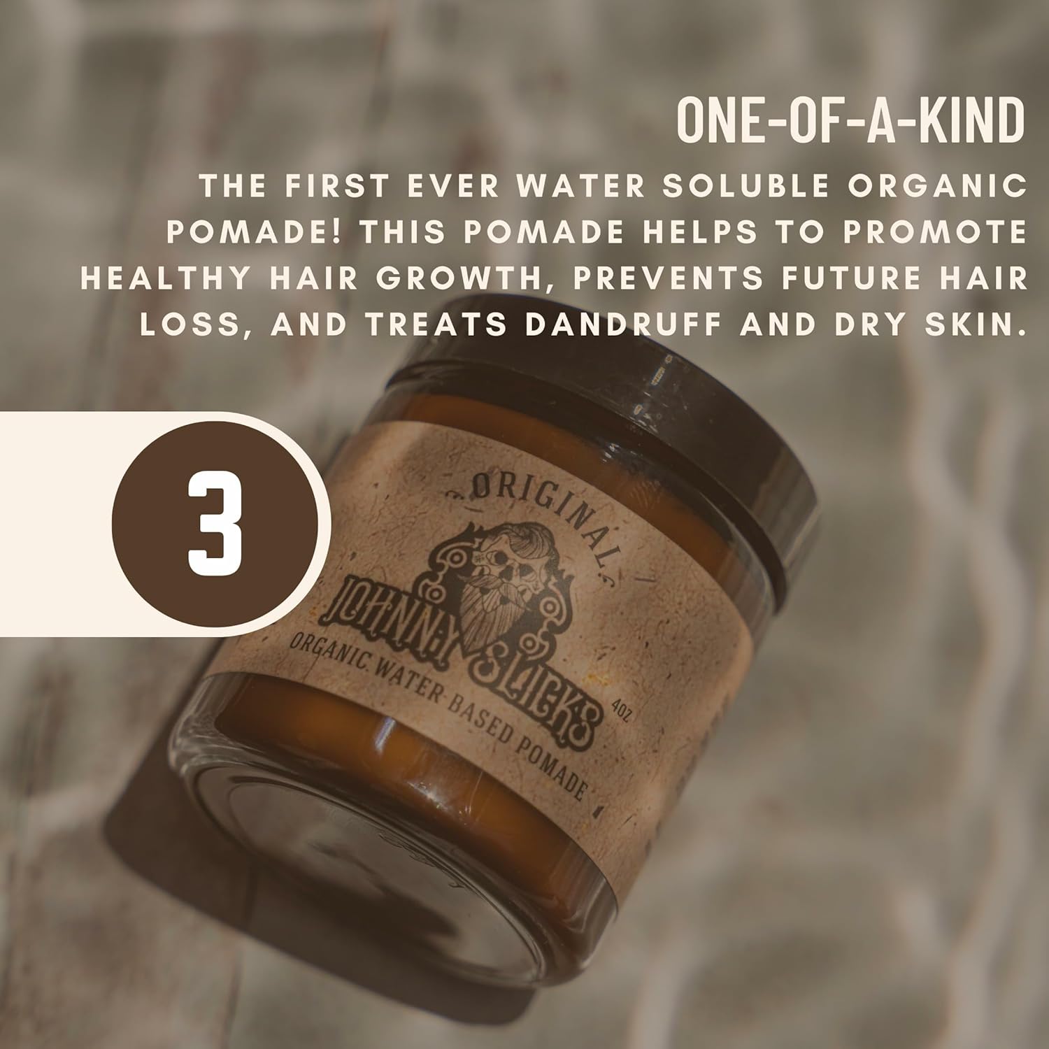 - MAINTAIN YOUR MANE: We're talking about the the World's First Fully Organic Water Based Pomade here!.Our strong hold pomade for men not only slicks and styles, it also promotes healthy hair growth and helps prevent future hair loss. Our mixture of therapeutic oils also helps hydrate dry skin so you can say goodbye to dandruff!