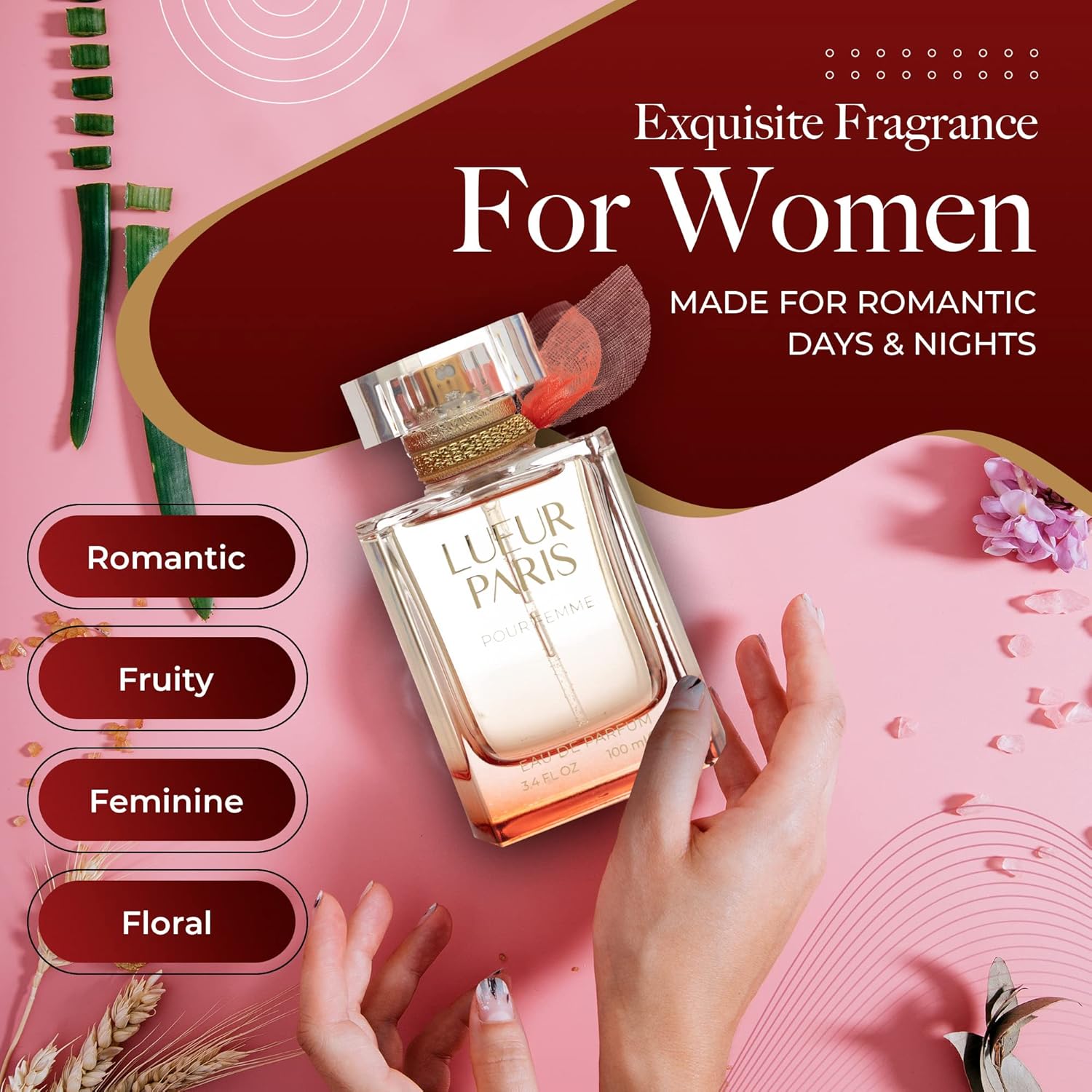 Lueur Paris Pour Femme Womens Perfume - INSPIRED by A WORLD RENOWED WOMEN'S PERFUME - Fruity, Floral, Patchouli, Sweet, Citrus, White Musk - 3.4 fl oz / 100 ml