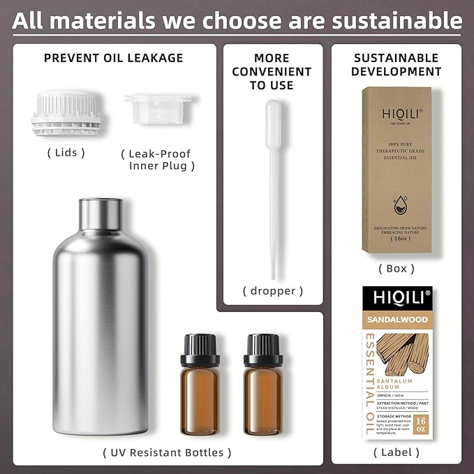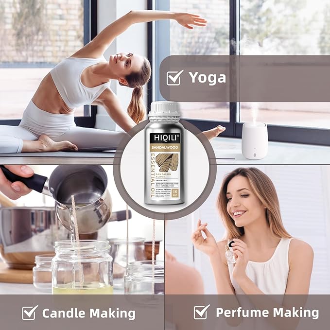 HIQILI Sandalwood Essential Oils, Long-Lasting Scent for Perfume, Diffuser, Soap Making & Candle- 16 Fl Oz