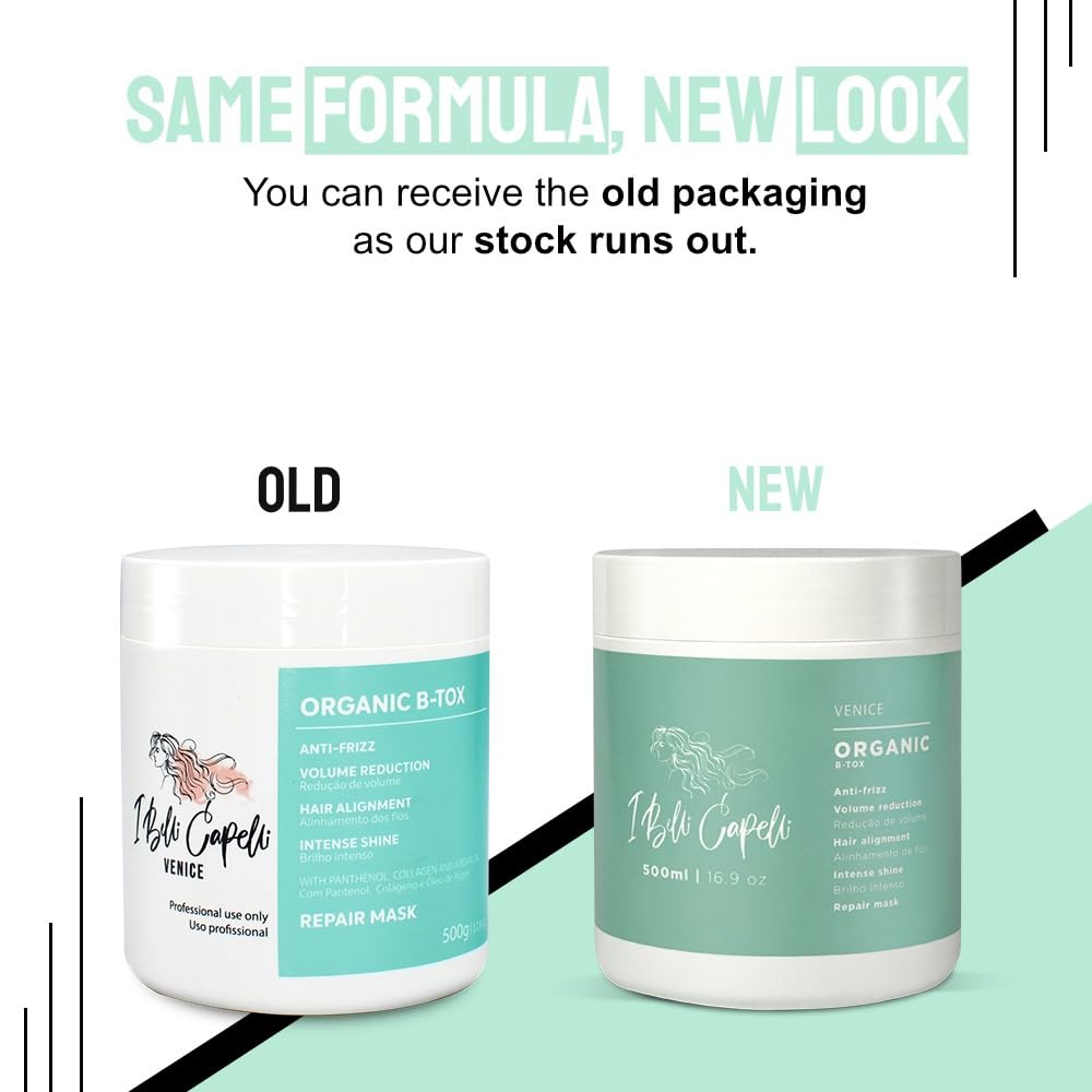 I Belli Capelli Venice Botox Hair Treatment - Smoothness for Dry and Damaged Hair - Deep Hydration, Volume Control, Reduces Frizz- Formaldehyde-Free, Organic Hair Botox (2-Pack, 17.6 oz/500 ml)
