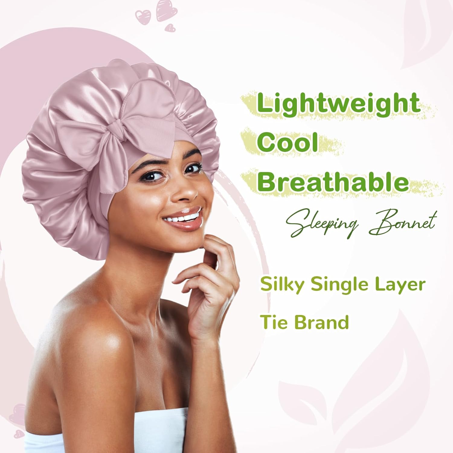 - Bonnet always disappear while opening your eyes? Here come a non-slip Bonnet to solve this headache problem, this satin Bonnets featured with stretchy long band, wide soft, high elastic and skin friendly, you can wrap on head, adjust tightness and then tie to fix Bonnet on head, which can stay on over night, prevent hair from messy, well protect your hair.