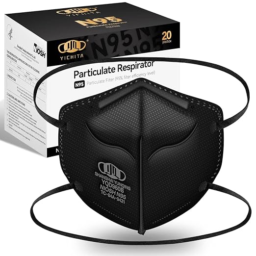 N95 Mask NIOSH Approved 20-Pack, Particulate Respirator N95 Face Masks Universal Fit - Individually Wrapped, Black